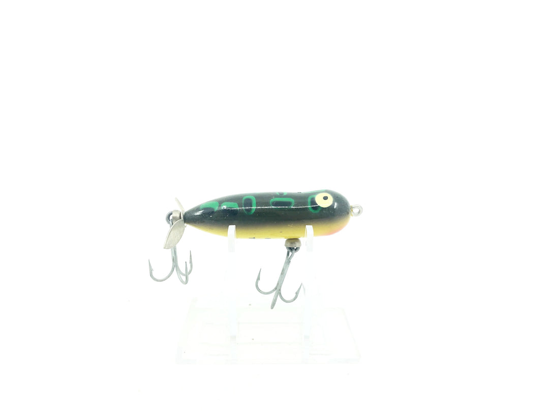 Heddon Baby Torpedo BF Bull Frog. Classic top water bait here. About 2 1/2" long. Lure is used little wear and some minor warping. Fish or collect. See photos.
