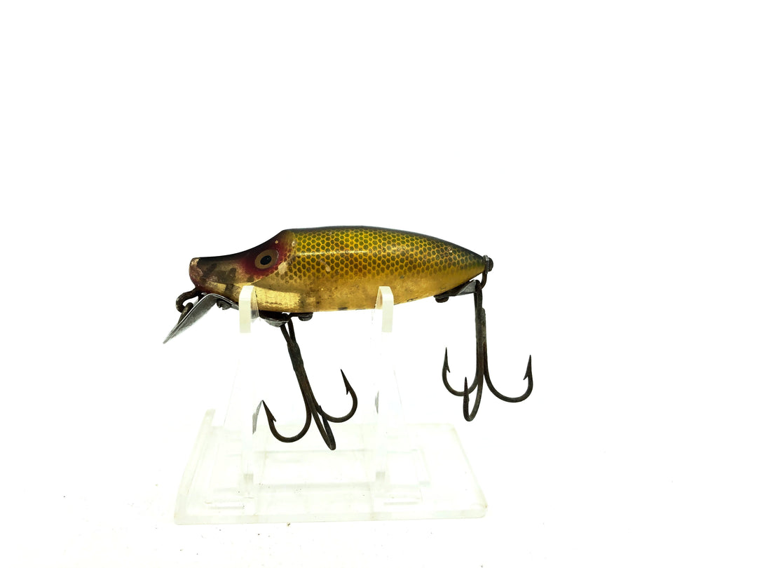 Heddon River Runt Sinker Spook 9110 L Perch. About 2 5/8" long. Used lure with some minor wear and markings but in overall good condition. See photos. One of the most iconic fishing lures of all time. Collect or fish you can't go wrong with a Heddon River Runt.