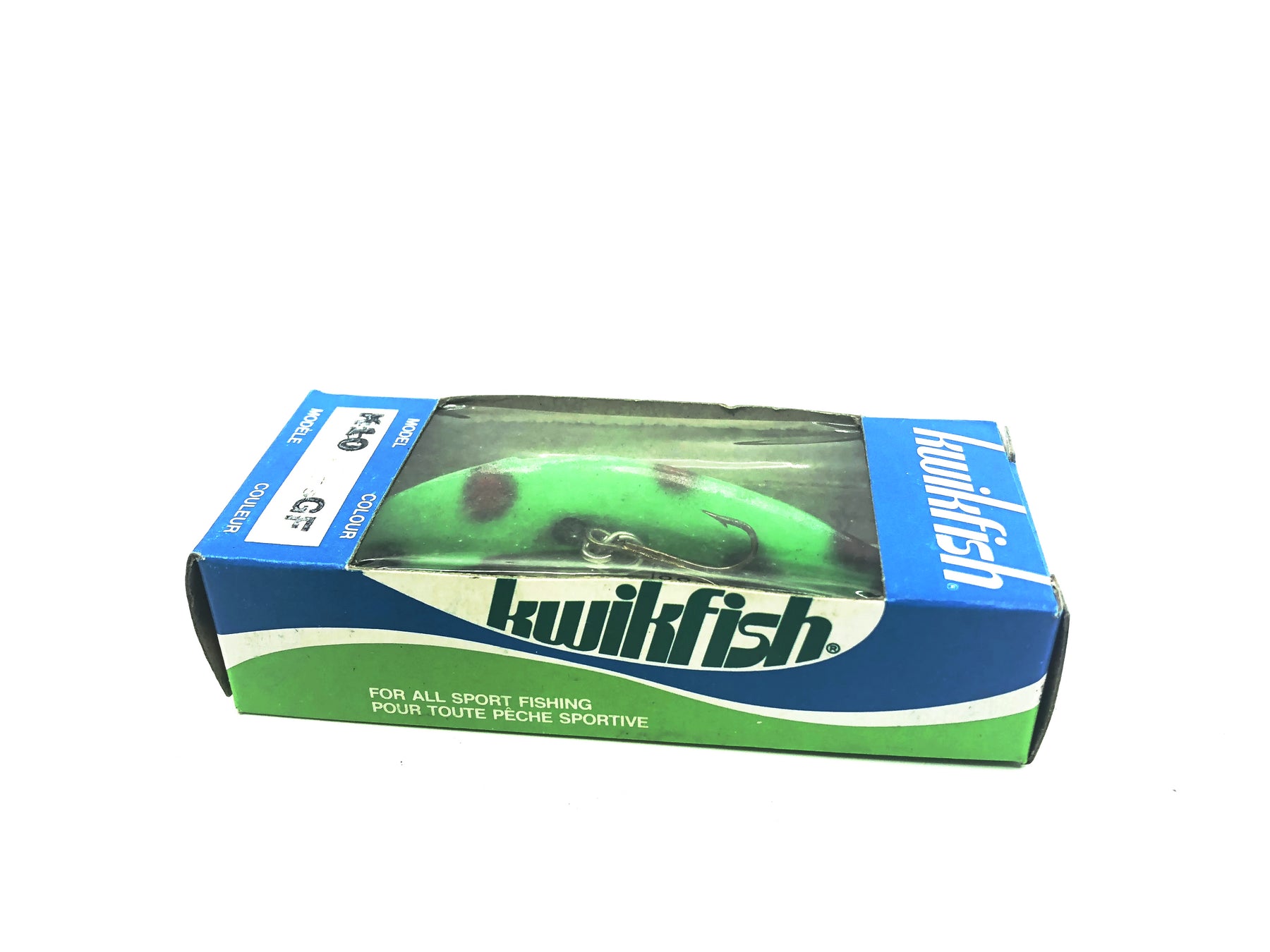 Pre Luhr-Jensen Kwikfish K10 GF Green Fluorescent Red and Black Spots Color New in Box Old Stock