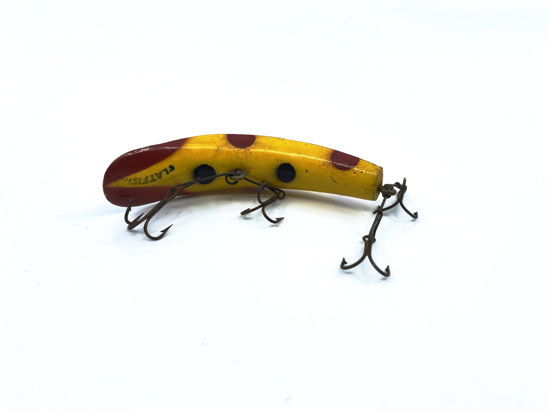 Vintage Helin Flatfish U20 YB Yellow Red Tip Black Stripe Color. About 3 1/4" long. Used vintage lure with some marks and wear but in overall good condition. Classic lure here. See photos. Fish or collect!