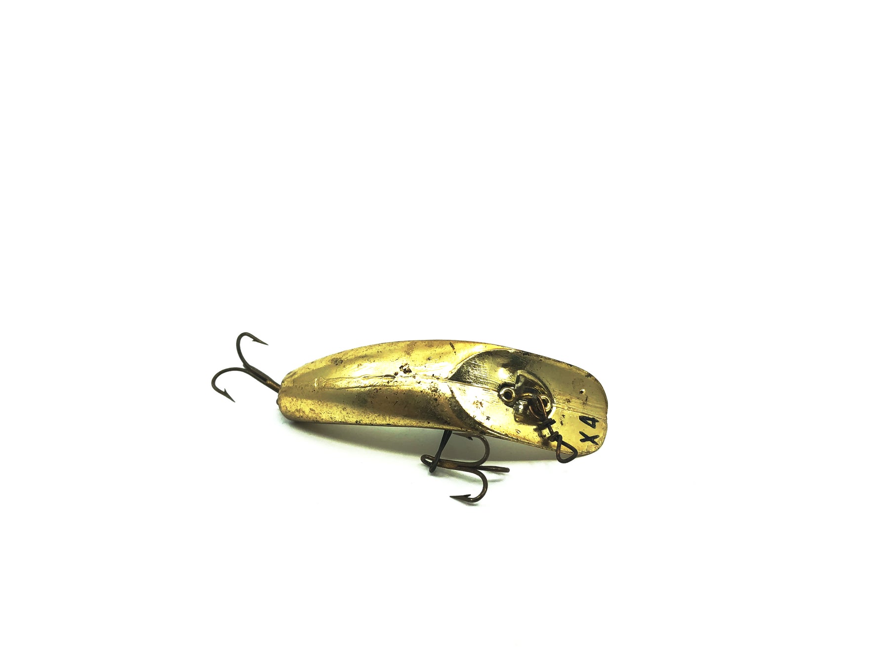 Helin Flatfish X4 SI Silver Metallic Color. At about 2 1/2" long this lure has some wear. This lure has had its hooks readjusted, but overall good condition. See photos.  Fish or collect!