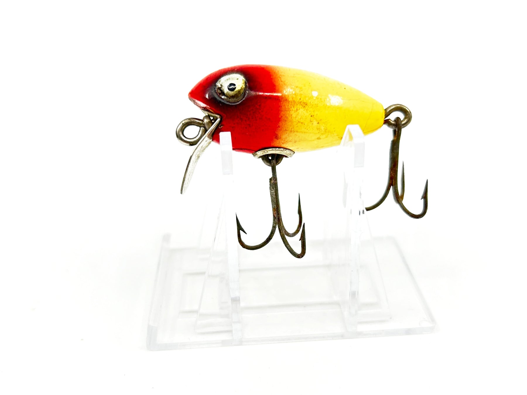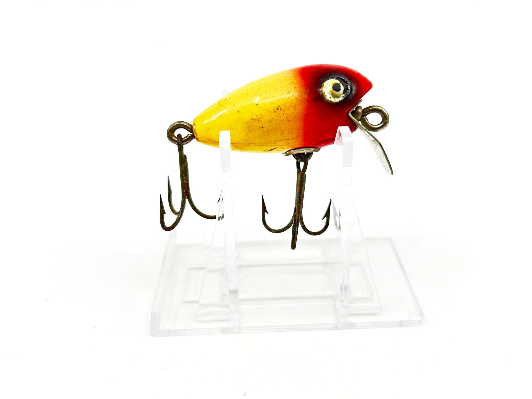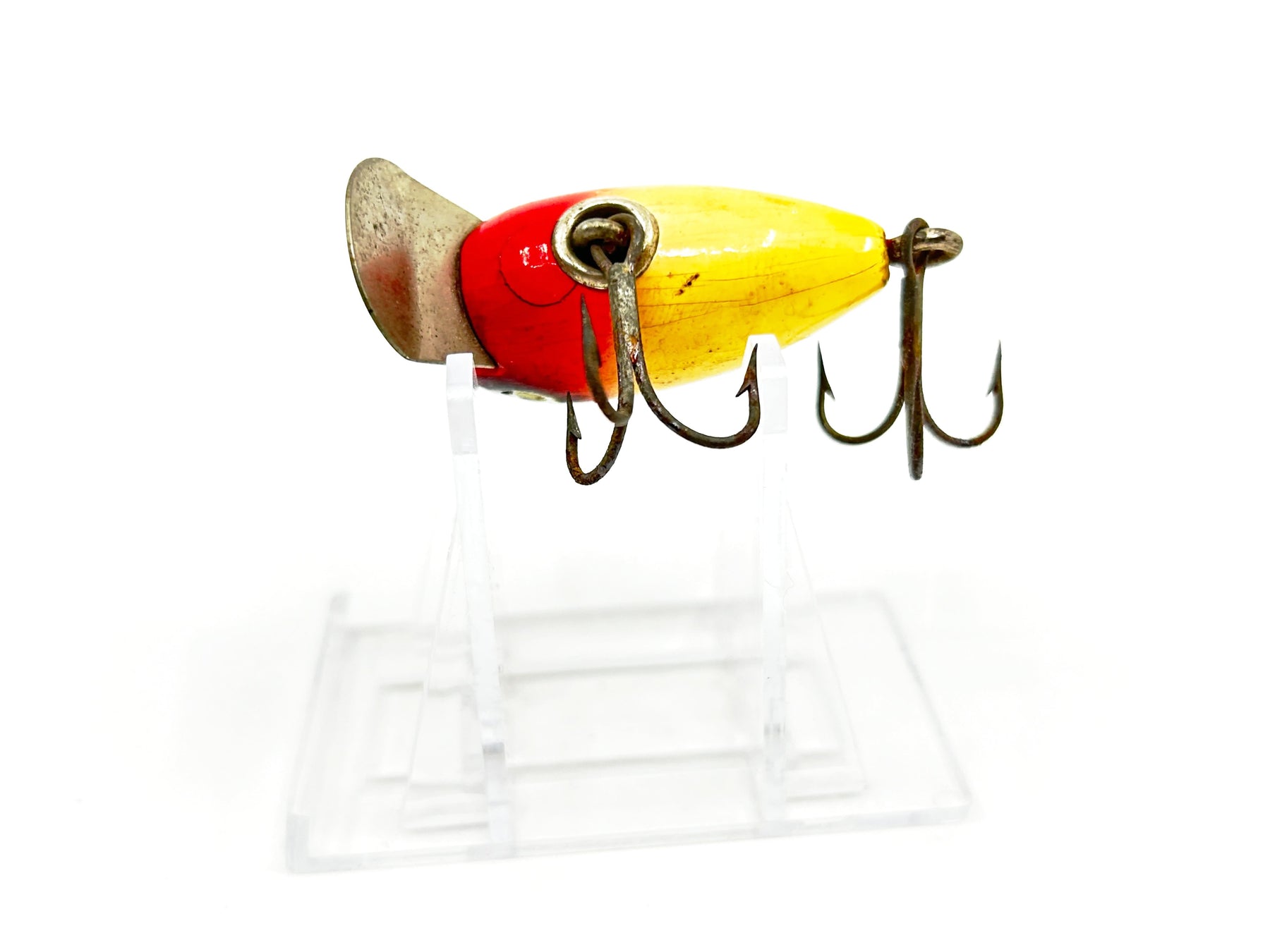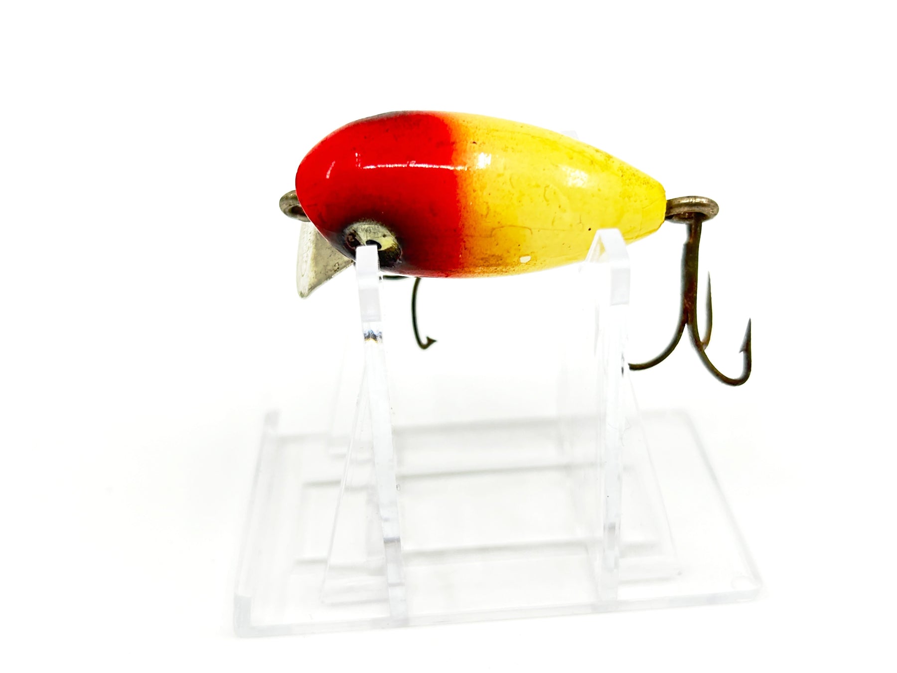 Shakespeare Grumpy, Red White Color. About 1 3/4" long. This lure is used with some minor wear but in good overall condition, see photos. Fish or collect. Great vintage wooden lure.