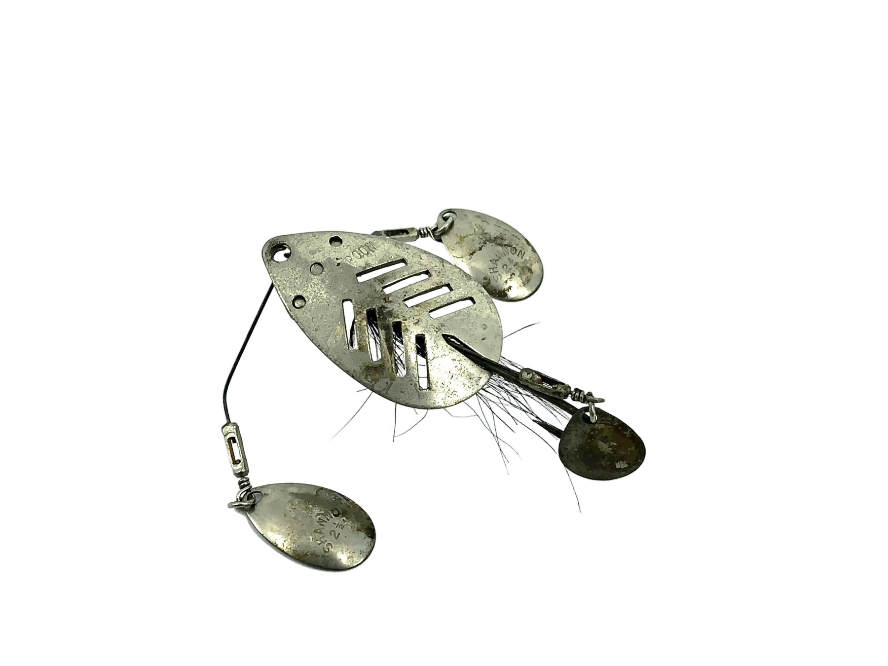 Shannon Spoon 2 1/2oz. About 2 7/8" long overall including hook. Lure is used with wear as shown but in overall ok condition. A somewhat tougher metal lure to find. Fish or collect. See photos.