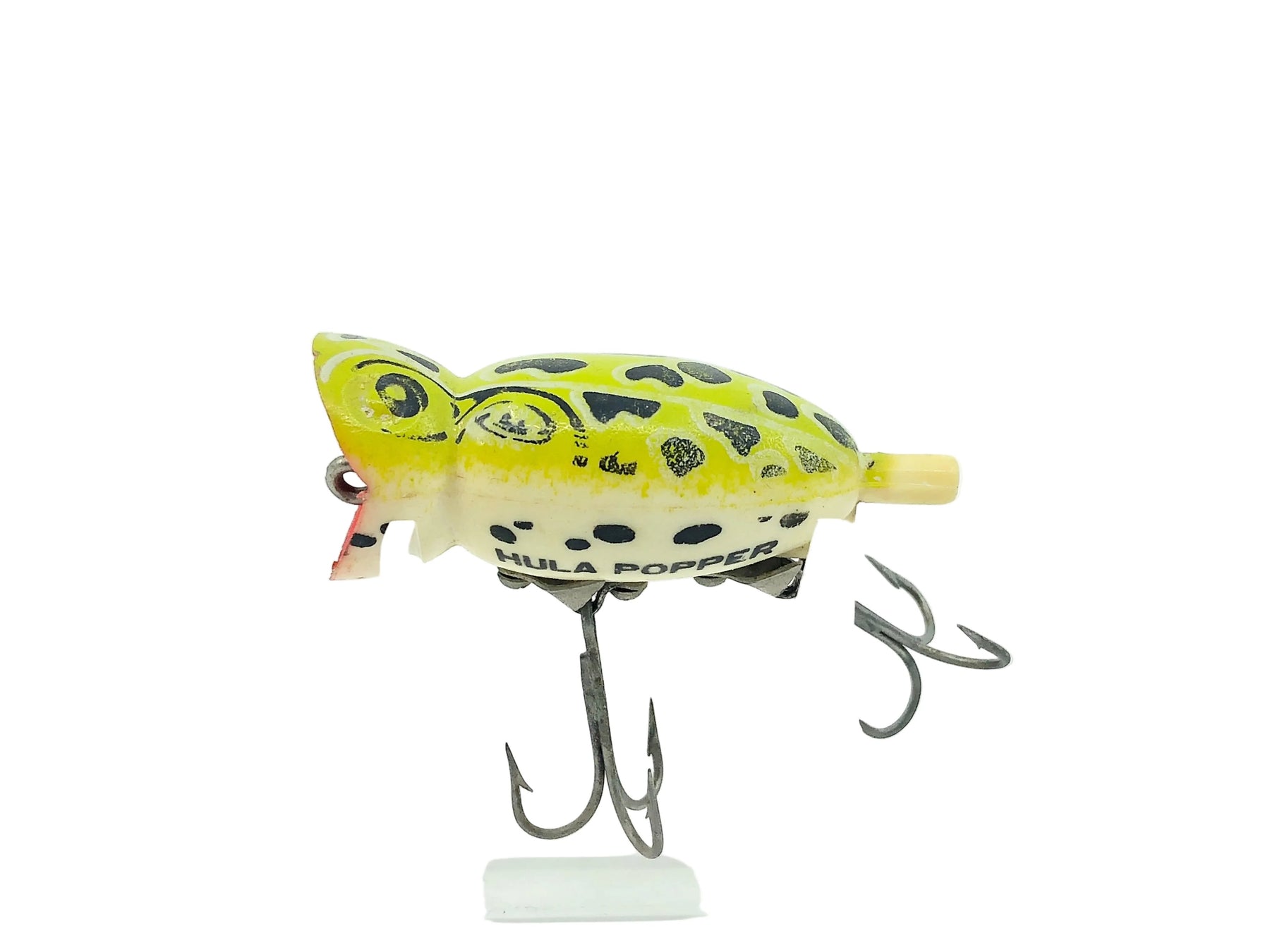 Arbogast Hula Popper 3/8oz, Seein's Believin Leopard Frog Color. Main body is about 2" long. Great vintage model here that's missing it's skirt. Lure is used with some minor wear but overall in good condition. Fish or collect. See photos.