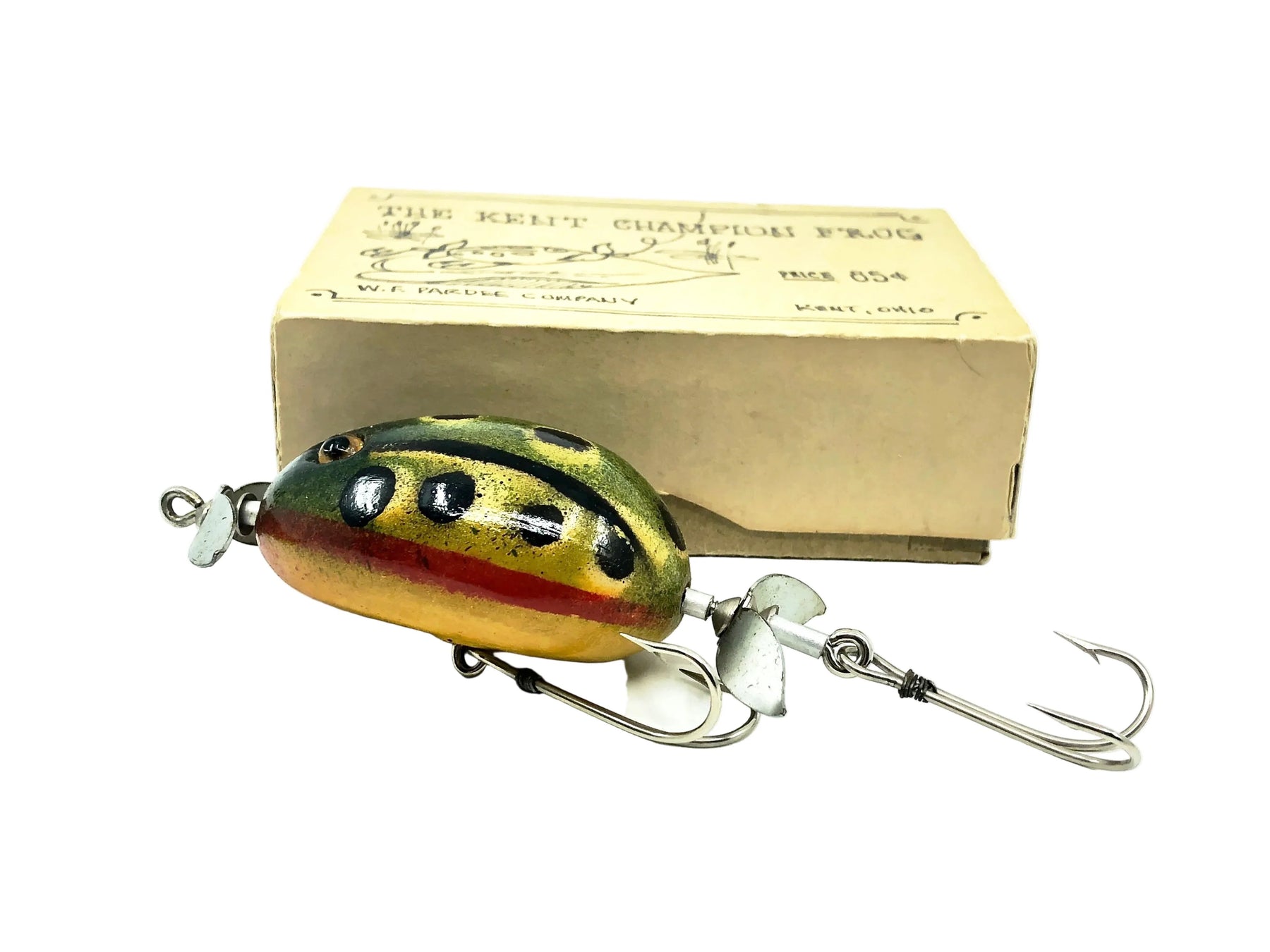 Club Lure Reproduction Pflueger Kent Champion Frog. Great reproduction with hand-drawn artwork. About 2 1/4" body not including hardware. Unknown who made this, though it was made in the early days of the NFLCC as a club lure. Very collectible and tough to find. Lure and box are both in nice shape with just minor storage wear. Simply beautiful lure. See photos.