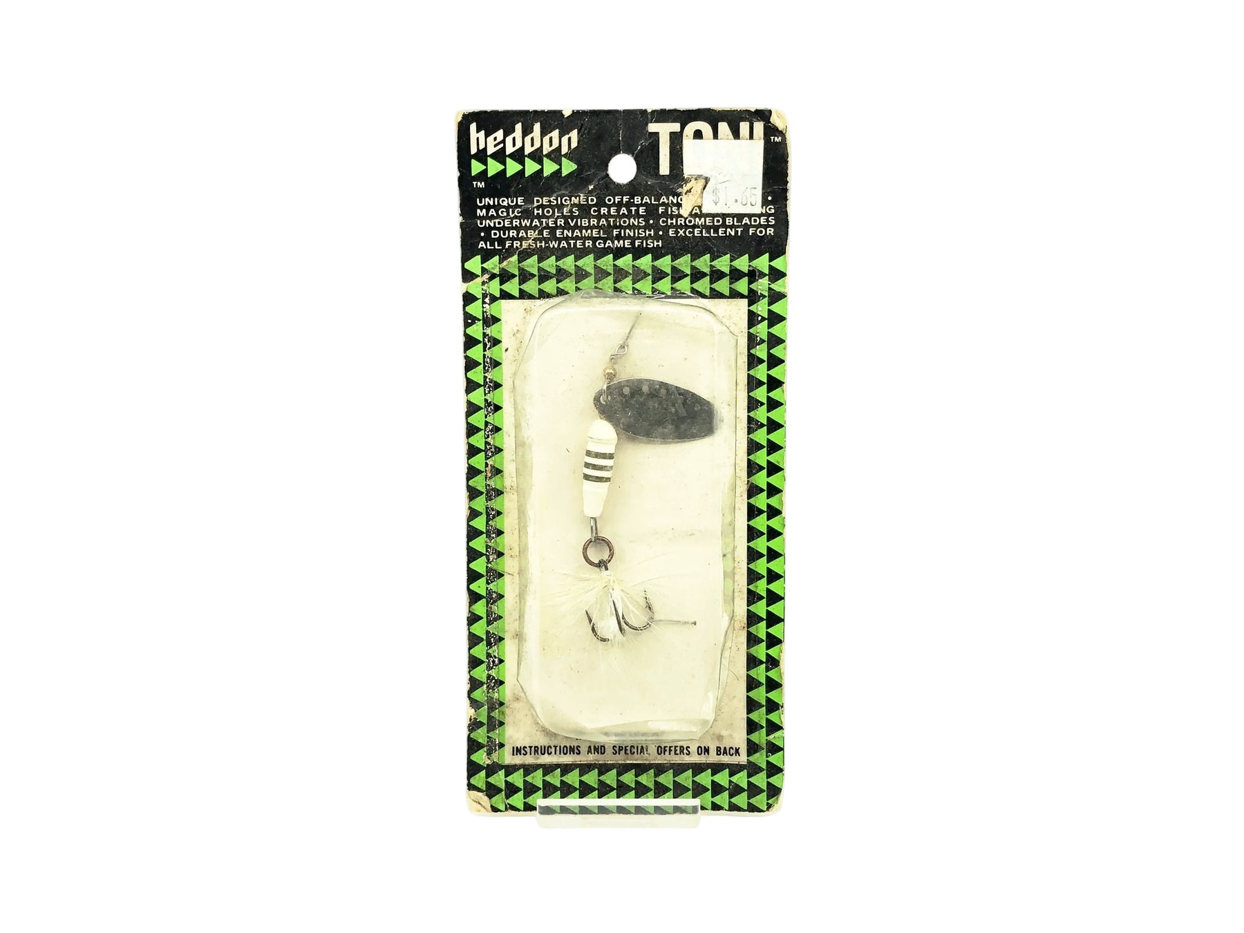 Heddon Toni Spinner #481, WS White Silver Color on Card. This Heddon Spinner weighs 1/4oz. Card has some minor wear and dirt but in overall fair condition, lure is new inside card, see photos. Fish or collect one of the all-time classic Heddon baits.