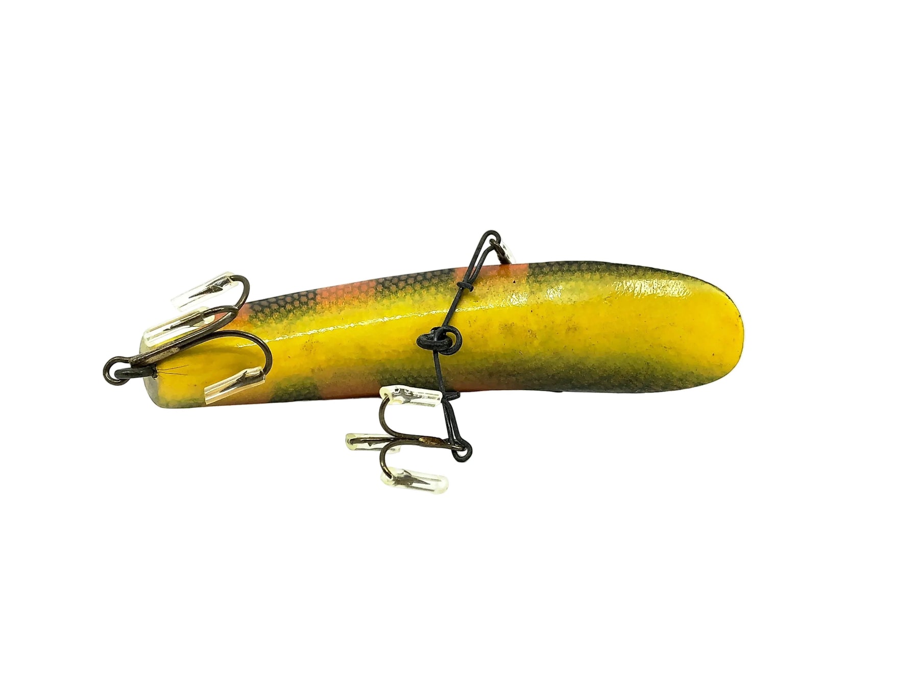 Helin Flatfish U20, PS Perch Scale Color.  About 3 1/2" long.  Used with some minor marks and wear but in overall good condition, see photos. Double hook hanger and single back treble hook model. One of the most successful fishing lures ever made.  Fish or collect! Vintage plastic version.