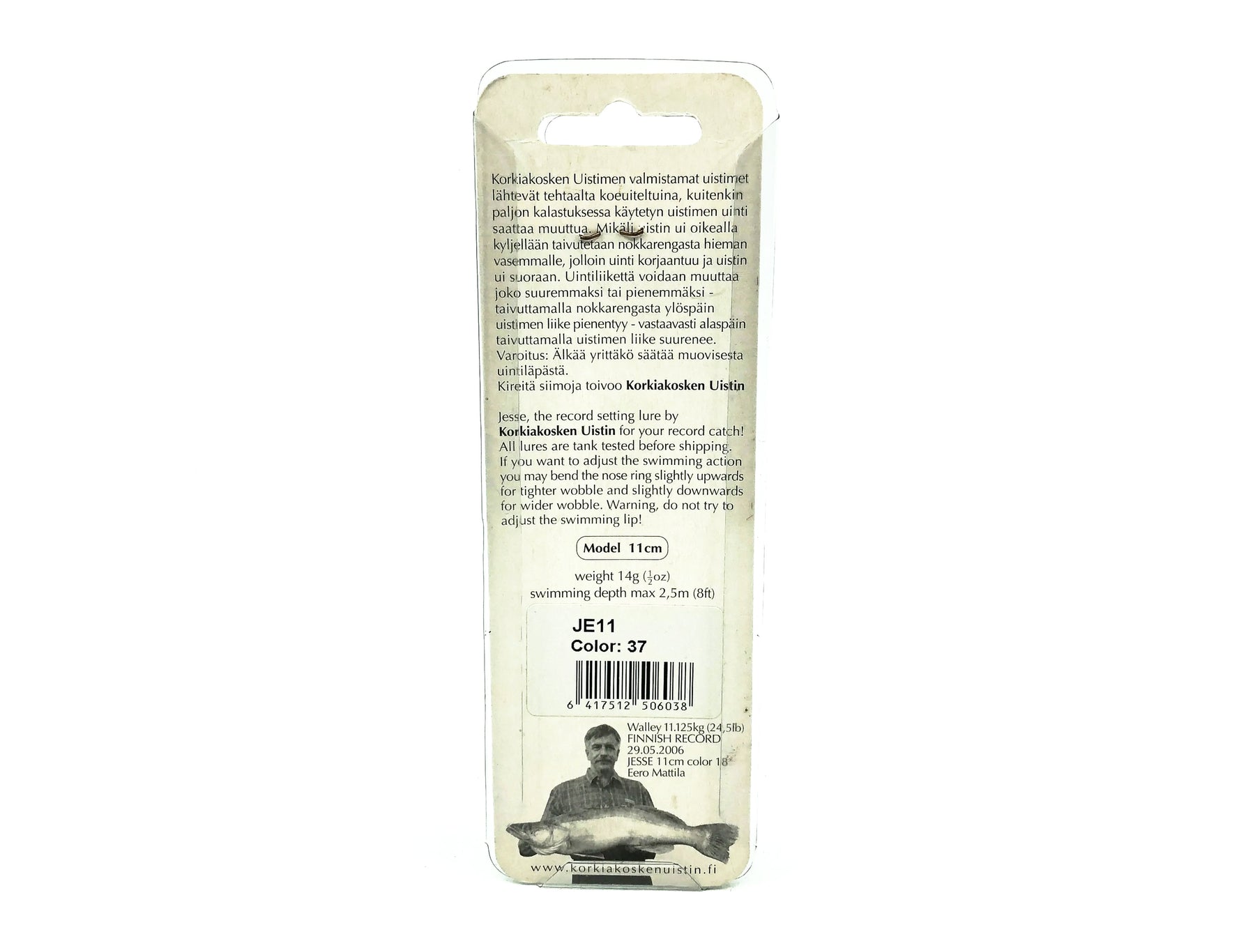 Korkiakosken Uistin Jesse Wobbler 11, Color #37. Unique lure for North America, these are made and sold in Finland. Lure is about 4 1/8" long. Bait is new on card and the card is in great condition. Fish this unique bait! Looks like a great walleye bait.