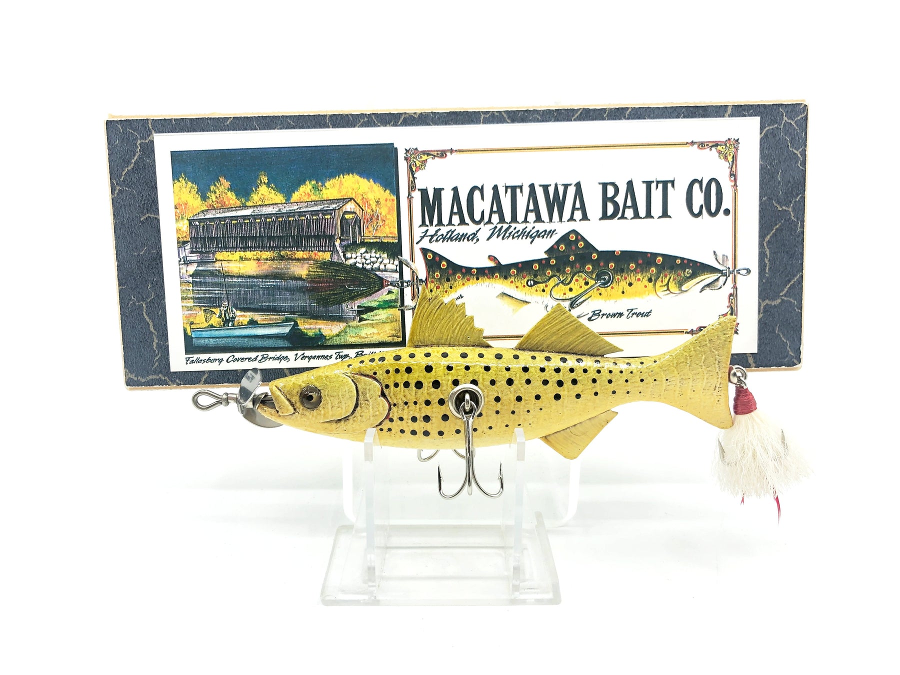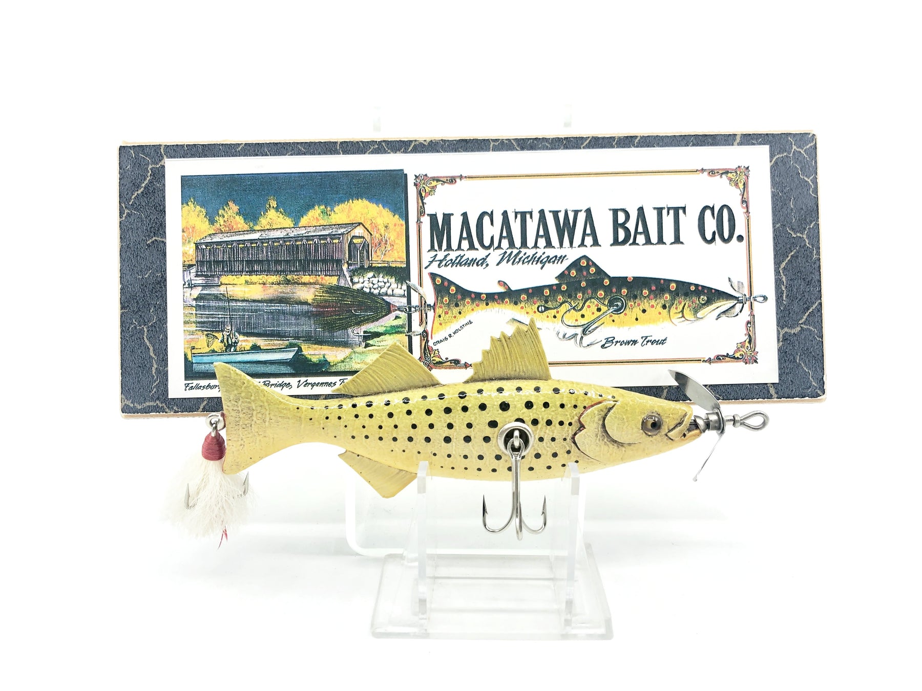 Macatawa Bait Co. Walleye with Box - Signed!  Great Macatawa bait here.  About 5" long body not including the hardware. Lure is in great condition.  Box in great condition with a little storage wear.  See photos.