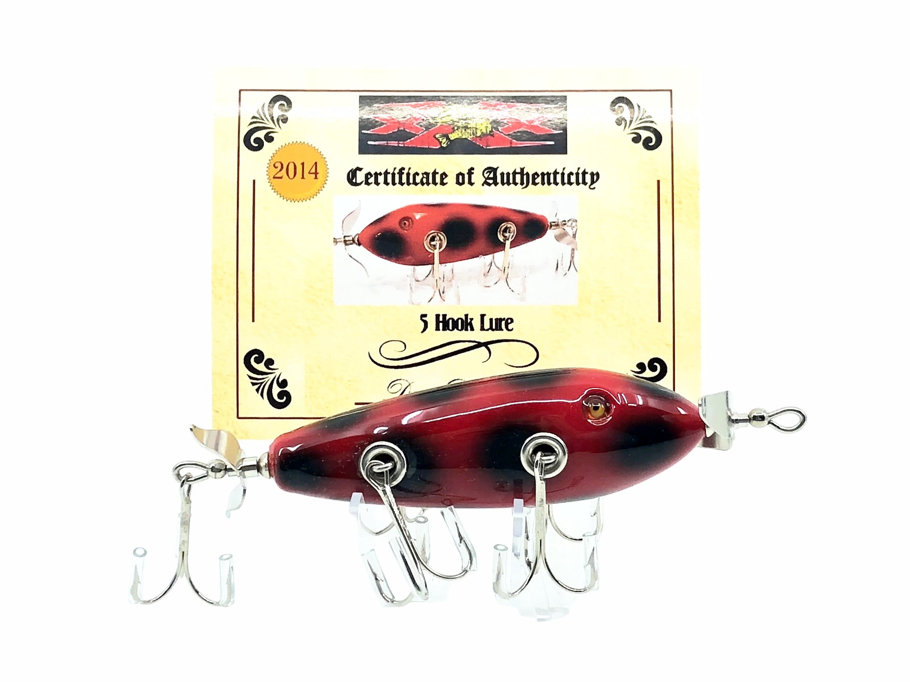 Musky Dan (XXX Lures) 5 Hook Minnow, Red/Black Spots w/COA