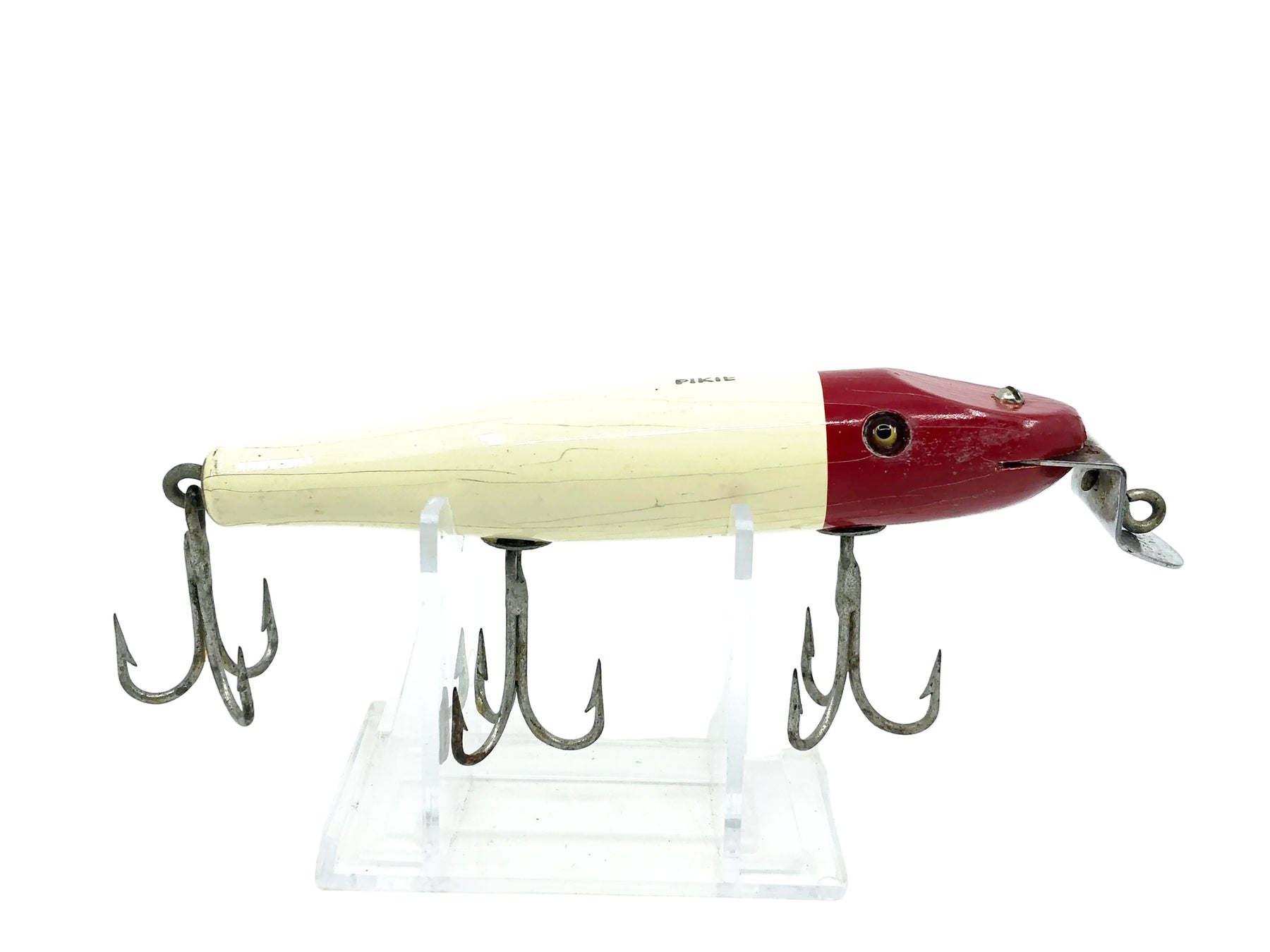 Creek Chub 700 Pikie, 701 Red Head/White Color - Vintage Wooden Version with glass eyes