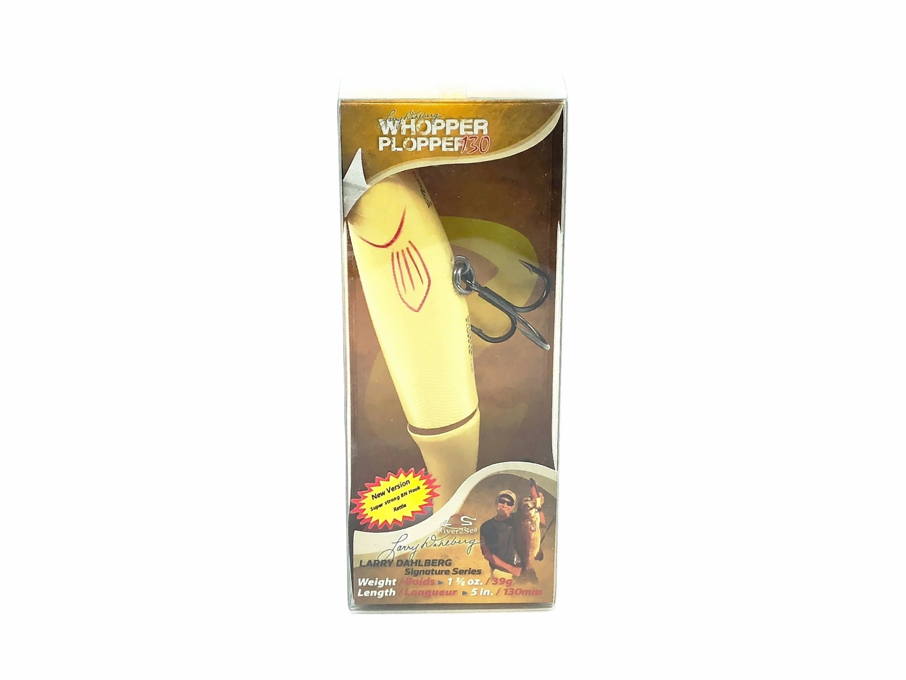 River2Sea Whopper Plopper 130, #14 Bone Color New Old Stock. Great premium bait here that's amazed the fishing industry for the last decade. Body and tail is about 5" long. Box open with some minor wear, but the lure is in new condition. Great deal on a bait perfect for any fishermen.