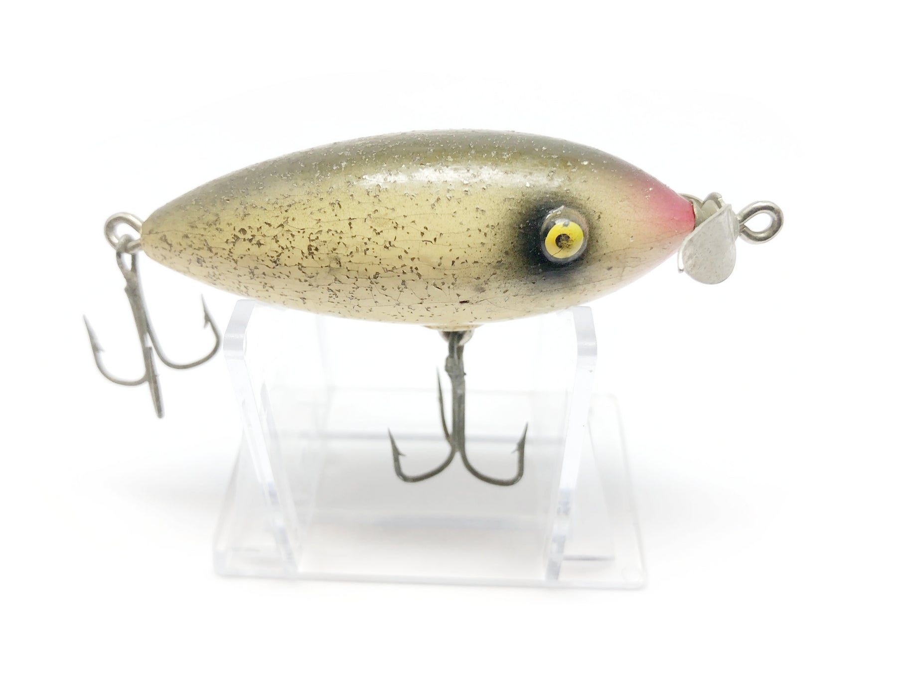 South Bend Midget Surf Oreno Silver Flash Type Color. About 2 3/4" long body. Great vintage lure here. Used but good condition, see photos. Wooden lure tack eyes. Last made around 1952.