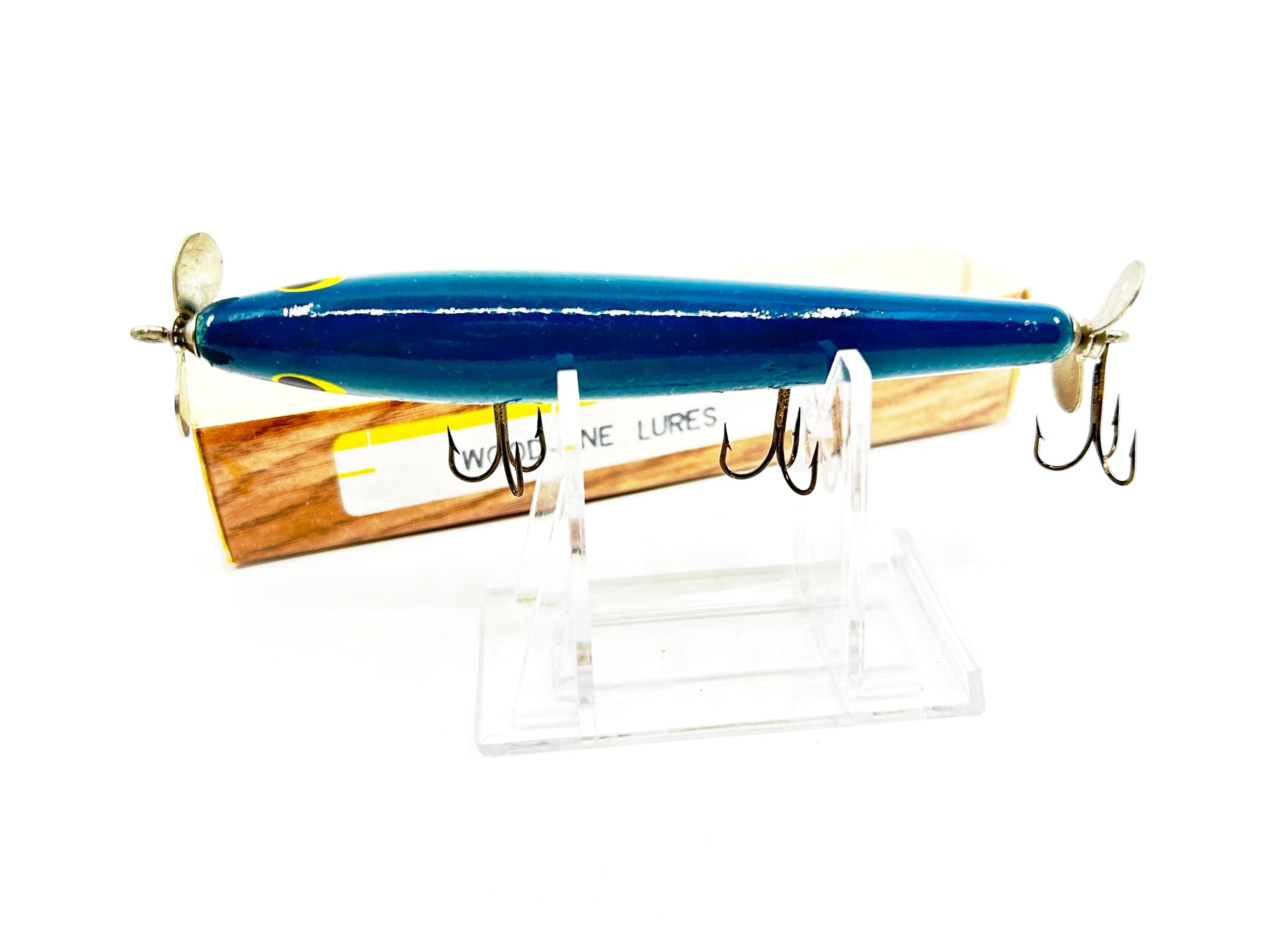 Wood-Line Lures Torpedo Bait, Blue Back White Belly Color, Wisconsin Bait. Great bait from Madison Wisconsin. Lure is about 4 1/4" long. Wooden lure. Used lure has some minor storage wear but overall very good condition. Box has some minor wear but overall good condition. Fish or collect, see photos.