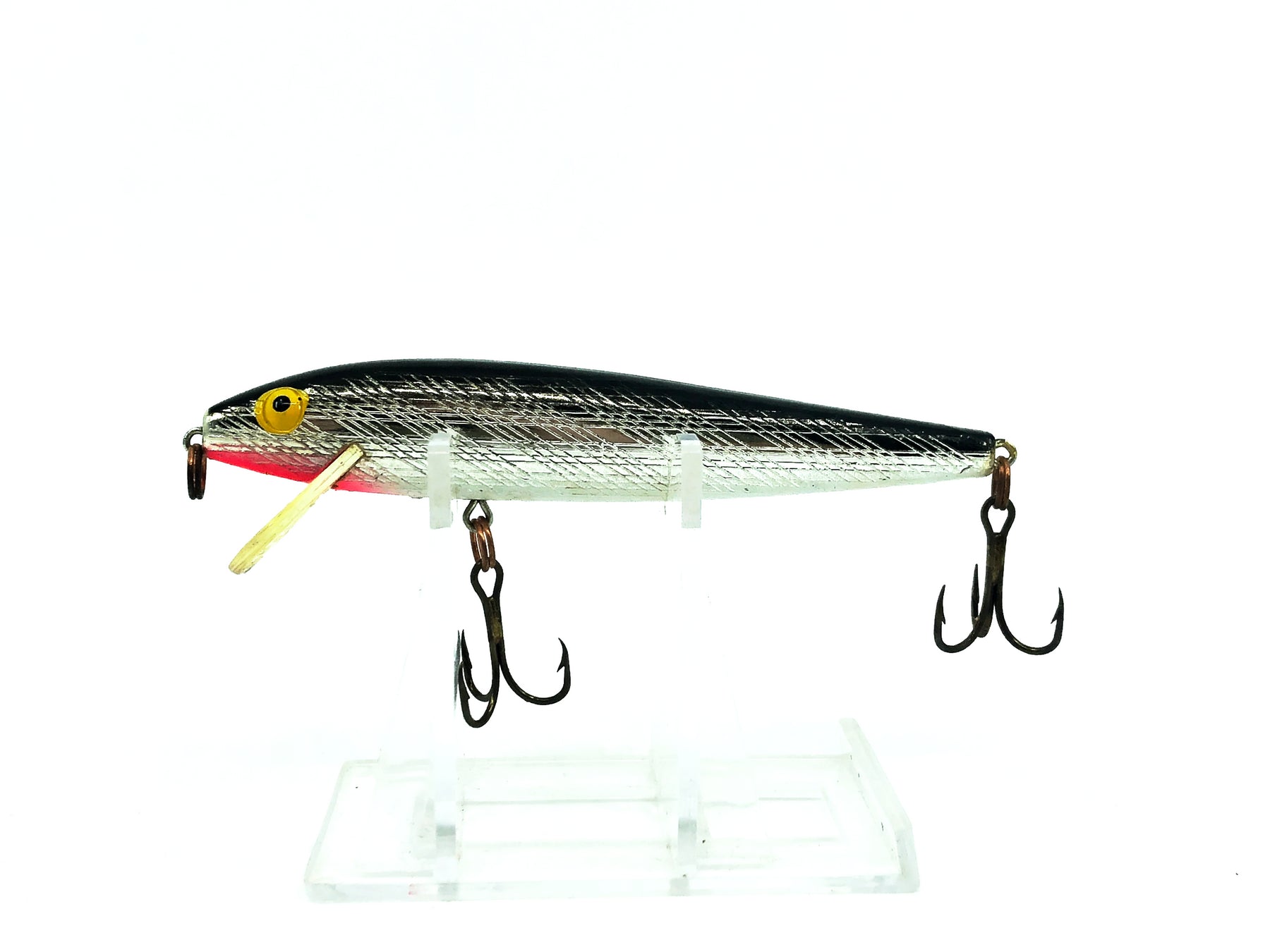 Rebel Floating Minnow F10, #01 Silver/Black Back Color. Older vintage Rebel here. About 3 1/2" long. Lure is used with some wear and marks but in overall good condition, see photos. Fish or collect.