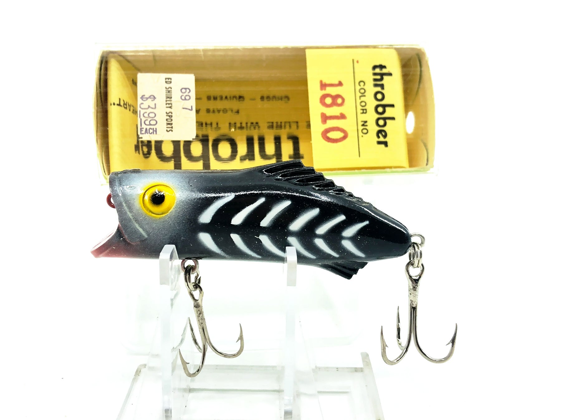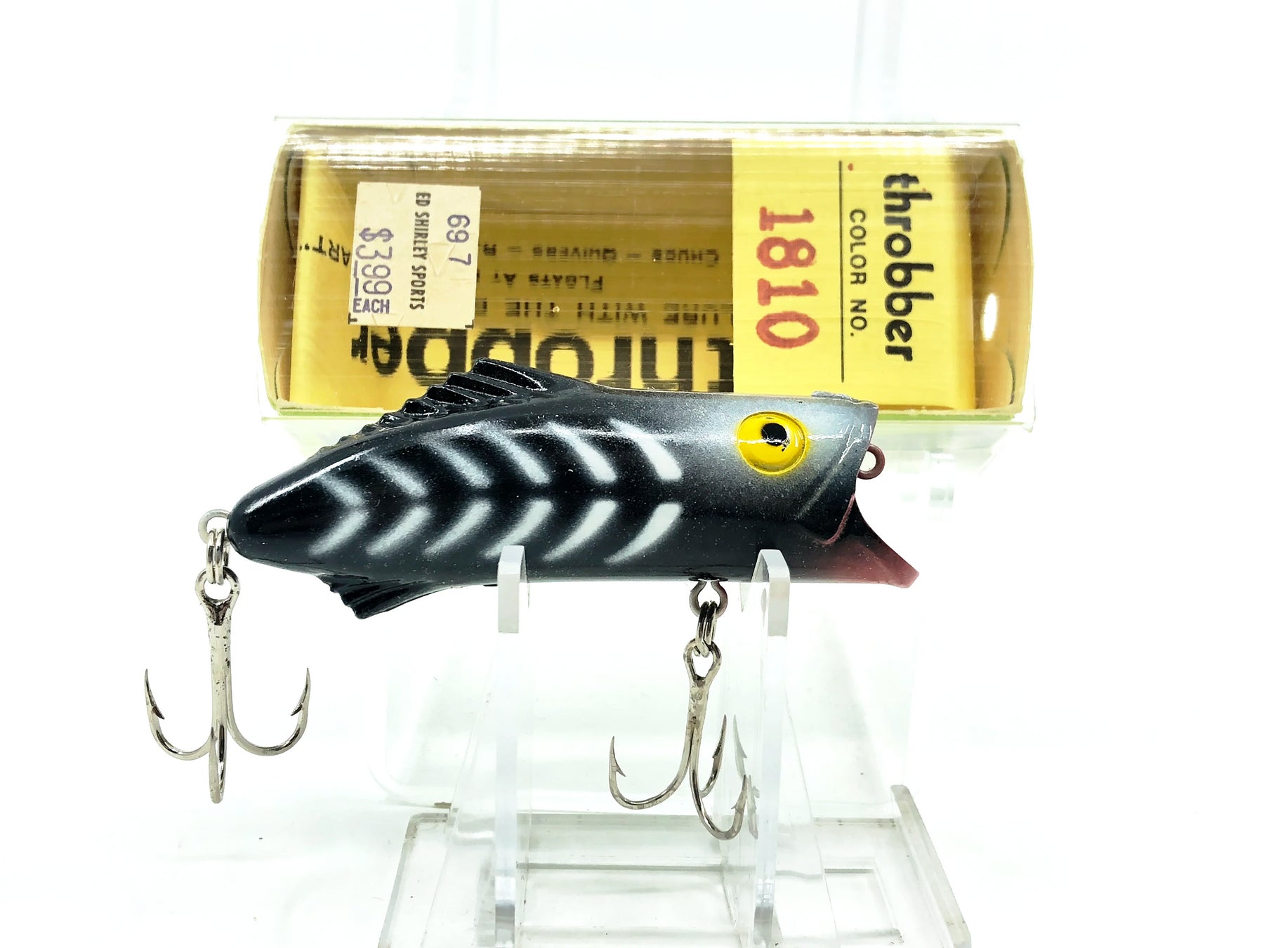 Whopper Stopper Throbber 1810, Black Shore Minnow Color with Box. Lure is new in box and the box is in good condition, see photos.  About 3" long. Great classic lure here great for your collection or tackle box!  See Photos.