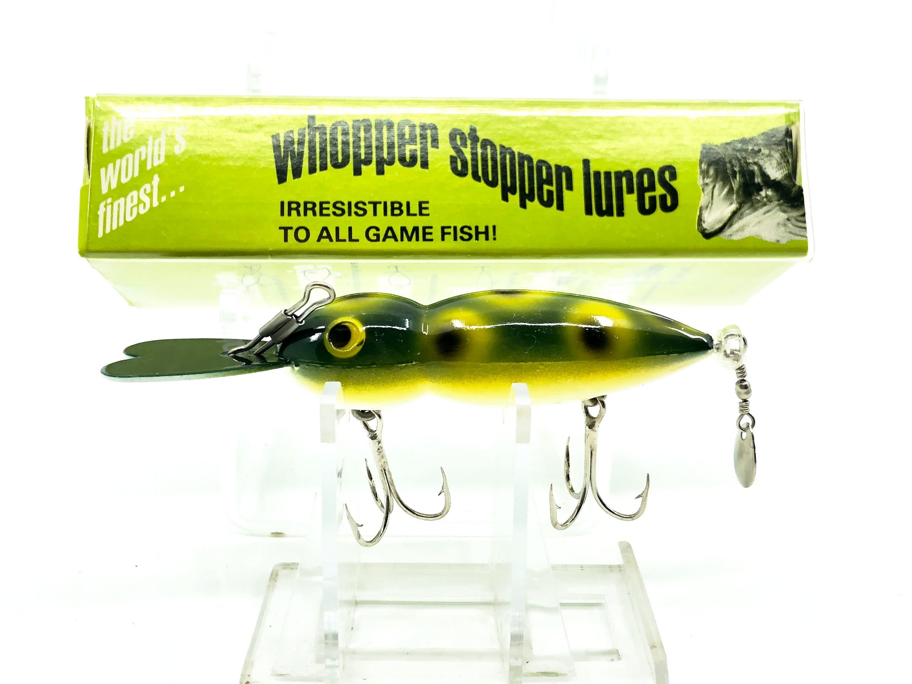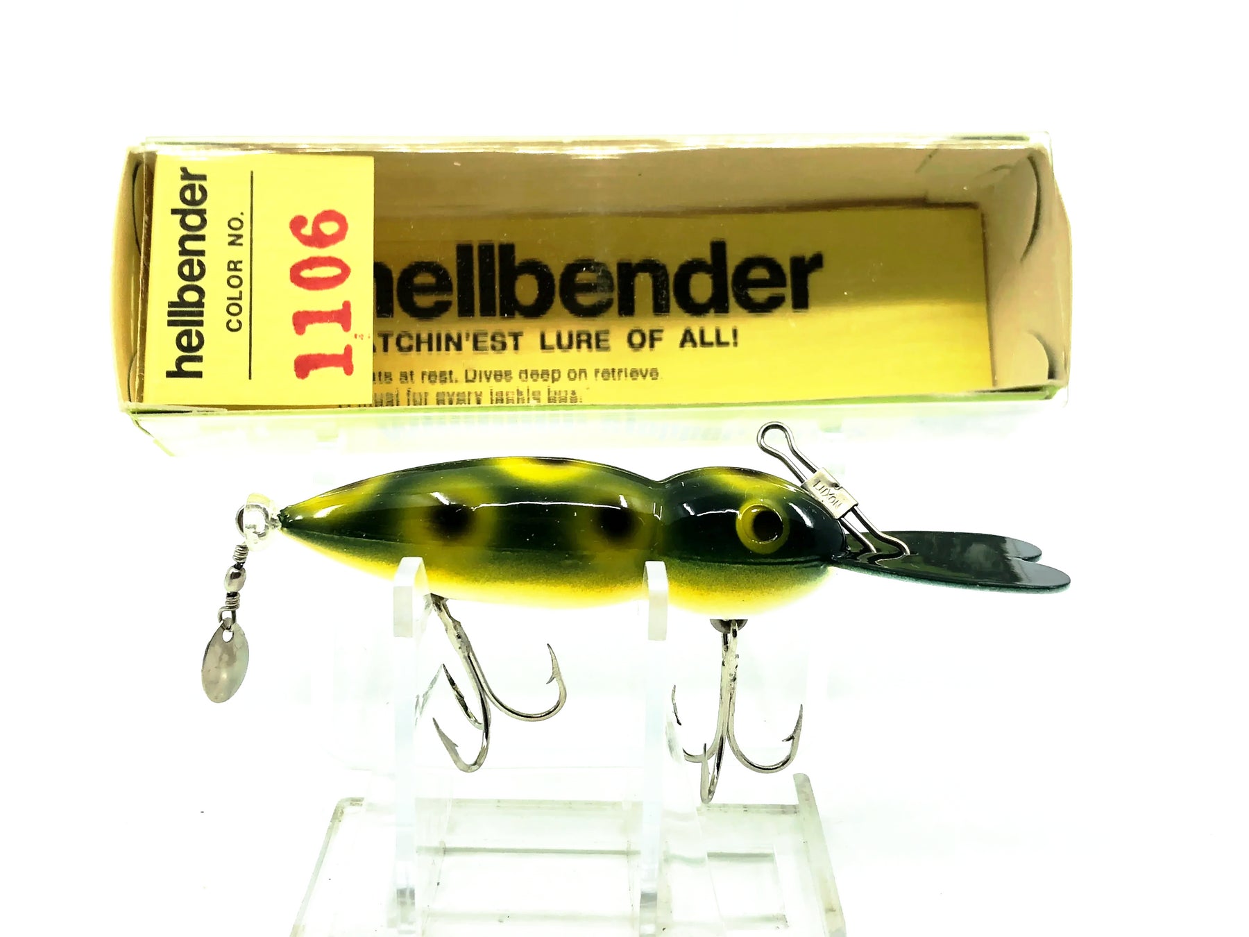 Whopper Stopper Hellbender 1106, Frog Color with Box. Lure is new in box and the box is in good condition, see photos.  About 3 3/4" long including the lip. Great classic lure here great for your collection or tackle box!  See Photos.
