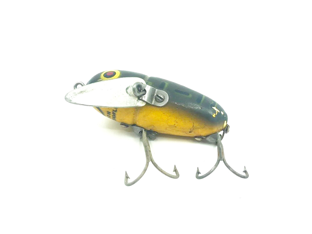 Heddon Wooden Crazy Crawler 2120 BF Bullfrog Color. About 2 1/2" body. Beautiful Heddon vintage wooden Crazy Crawler. Lure is used with some wear and marks but still overall in ok condition, see photos. Very desirable Heddon bait.