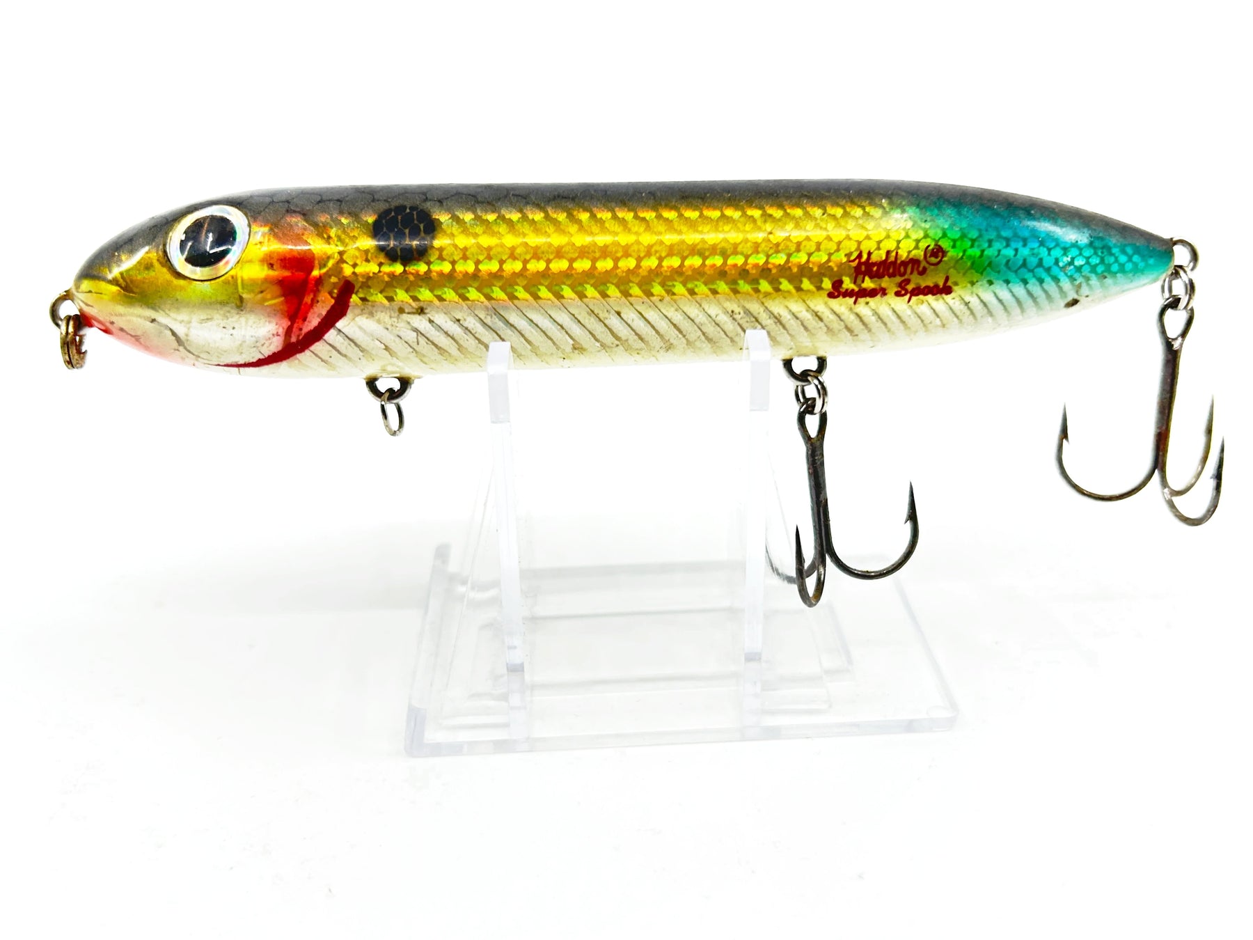 Heddon Zara Super Spook Jimmy Houston Holographic Shad Color-5" Model.  About 5" long.  Nice vintage lure here.  Lure is used with some minor wear, missing front hook, but still in overall good condition.  See photos.  Fish or collect this classic Heddon lure.