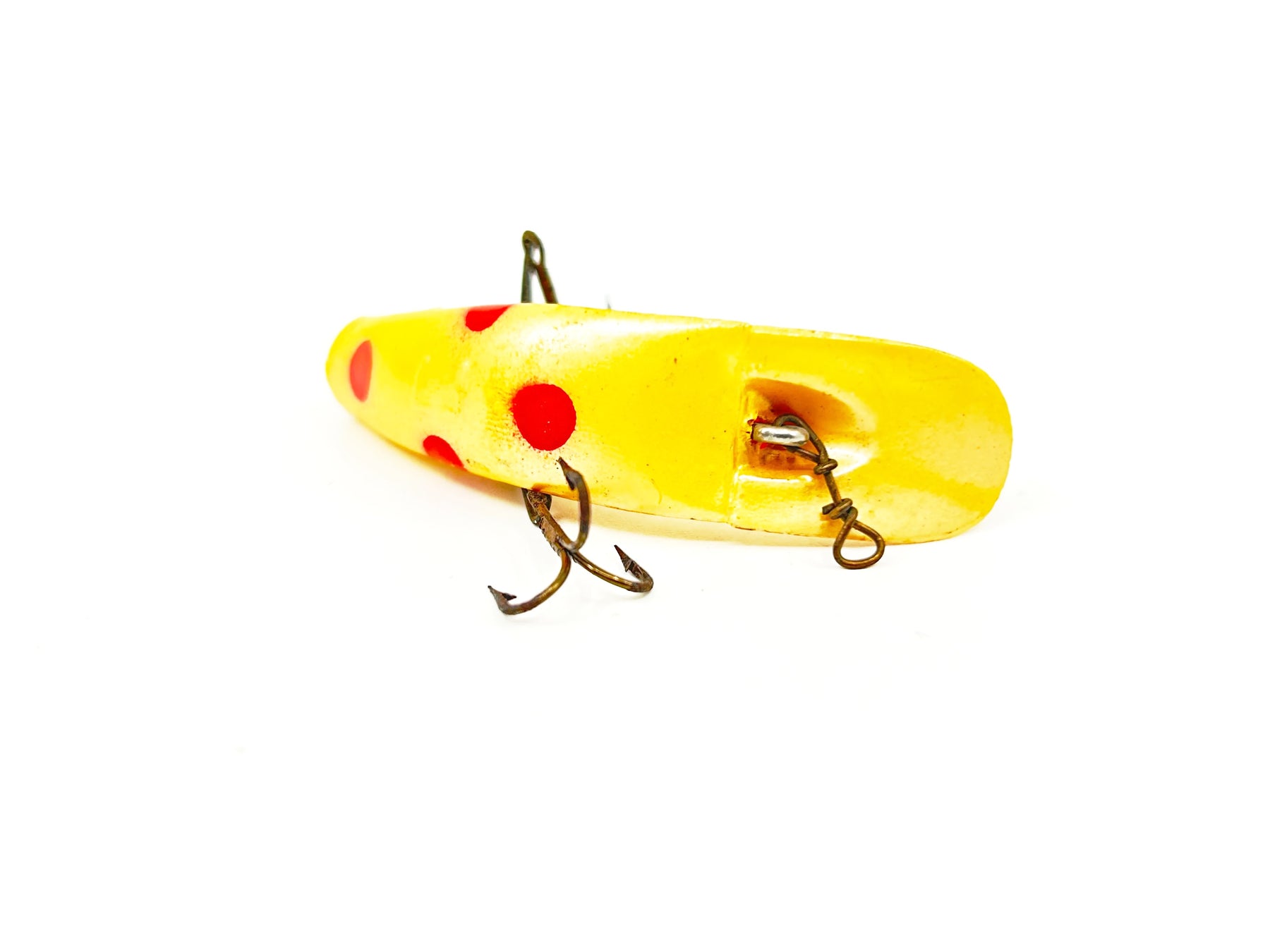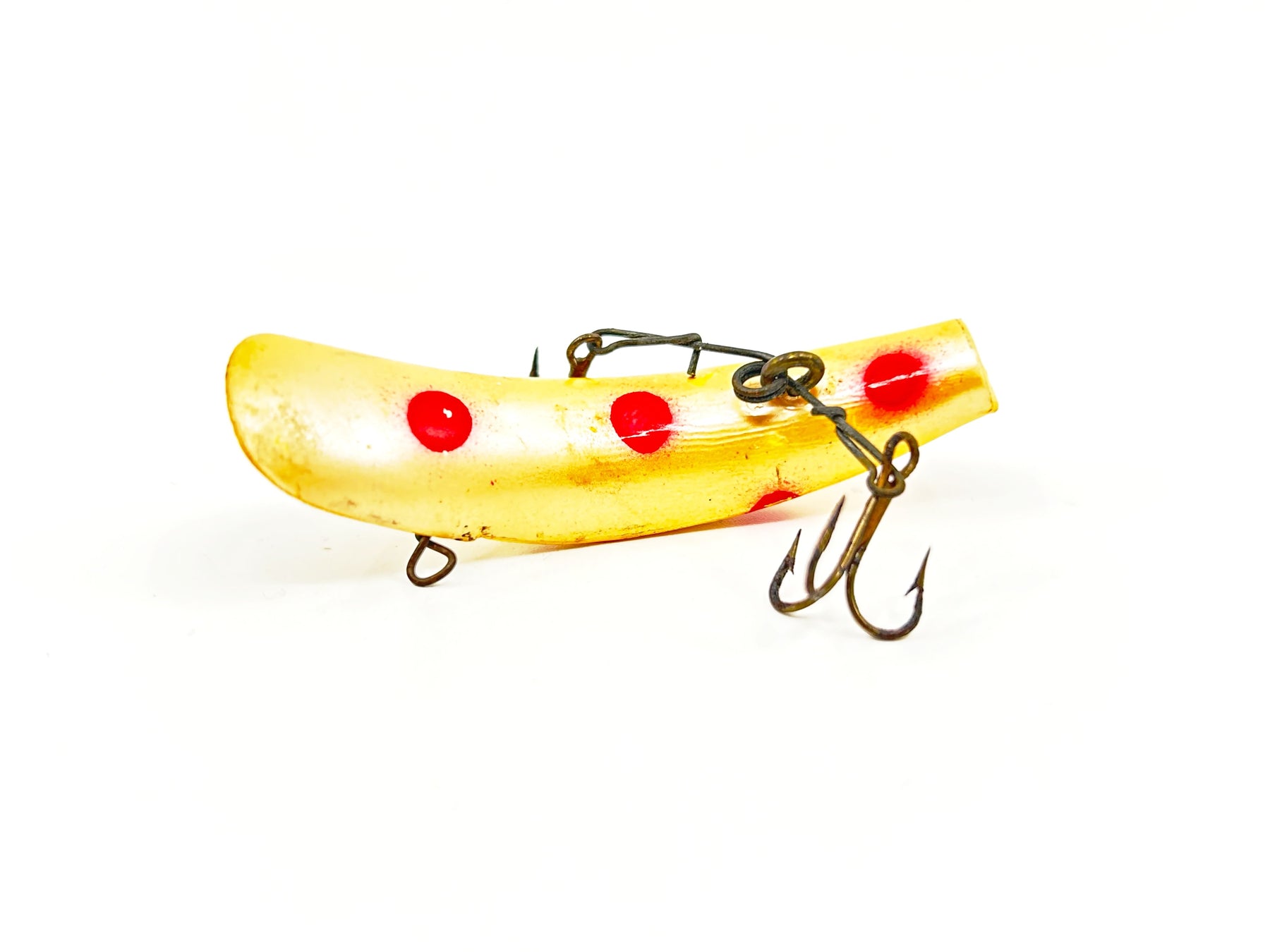 Helin Flatfish F7, Pearl with Dots Color. About 2 1/2" long. Used with some wear but overall good condition, see photos. One of the most successful fishing lures ever made. Fish or collect! Vintage plastic version.