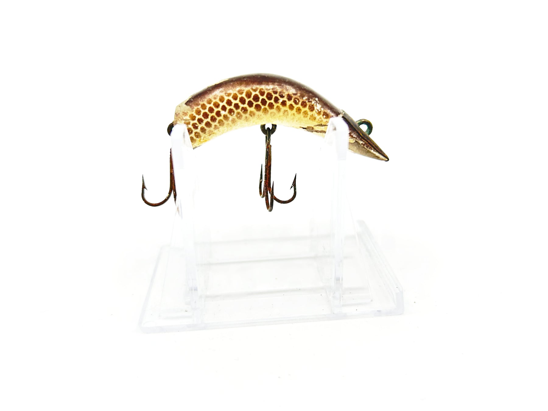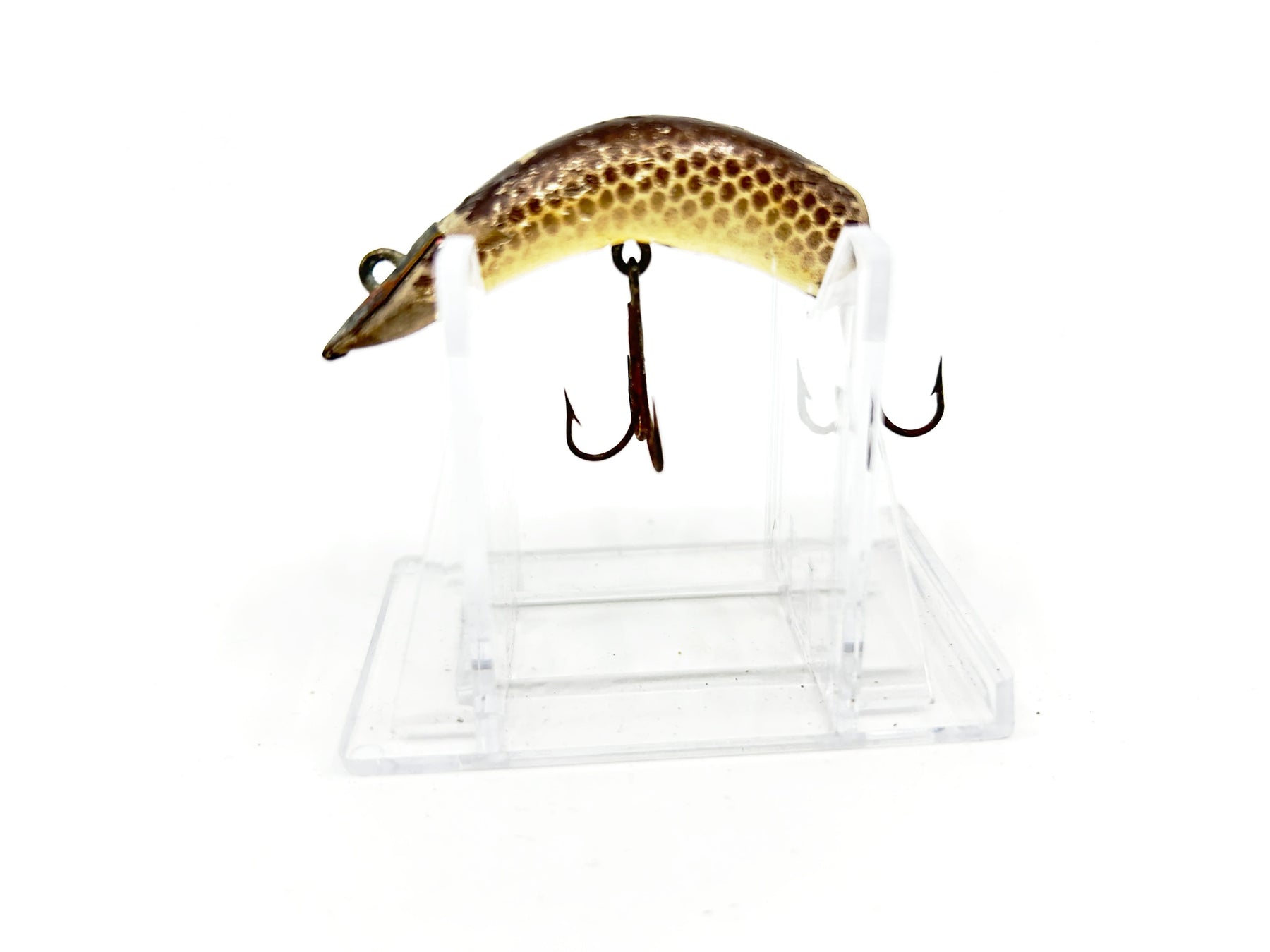 Kautzky Lazy Ike 1 Brown Scale Color-Wooden. About 2" long. Used with wear but overall in fair condition, may clean up better. See photos. Great classic lure here. Fish or collect.