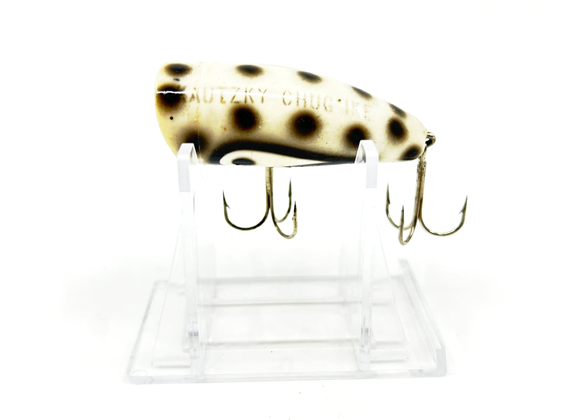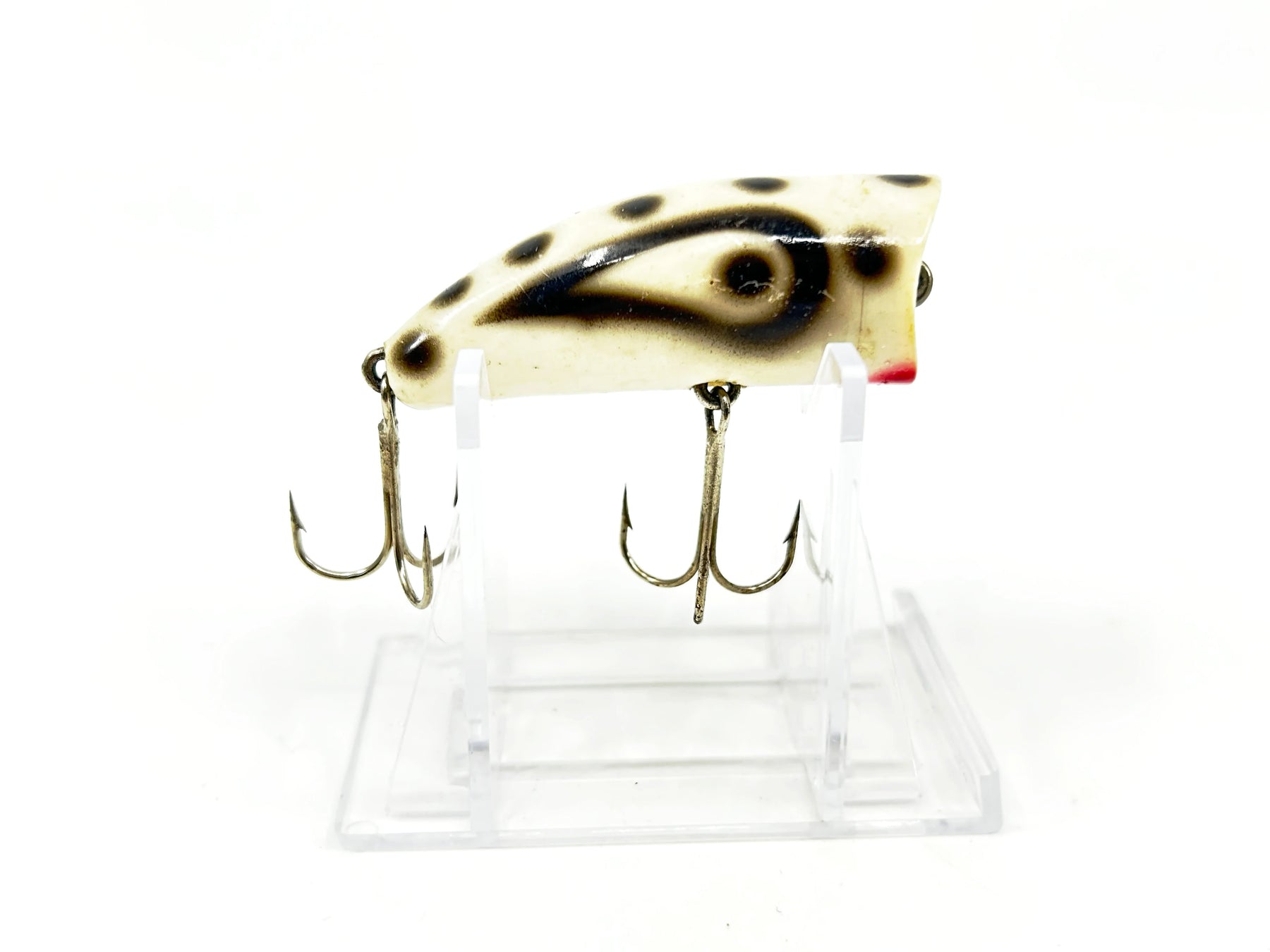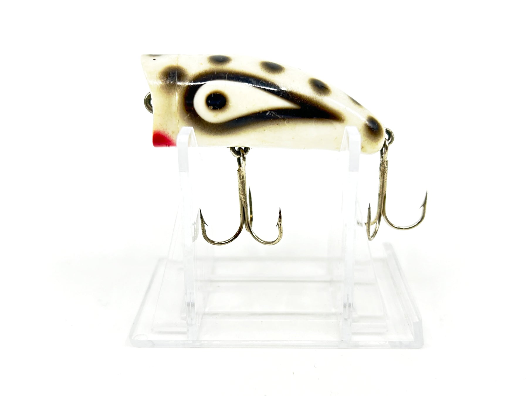Kautzky Lazy Ike Chug Ike Lure WBS White/Black Spots Color-Smaller Size. About 2 1/4" long. Used with some wear but overall in good condition (may clean up a little better), see photos. Great classic lure here. Fish or collect.