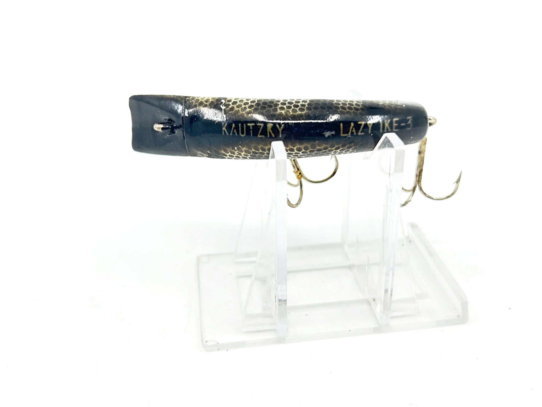Lazy Ike 3 MBLR Metallic Black Rib Color. About 3" long. One of the most famous lures of all time. Lure is vintage and used with some wear but in overall good condition, see photos. Collect or fish! Plastic lure.