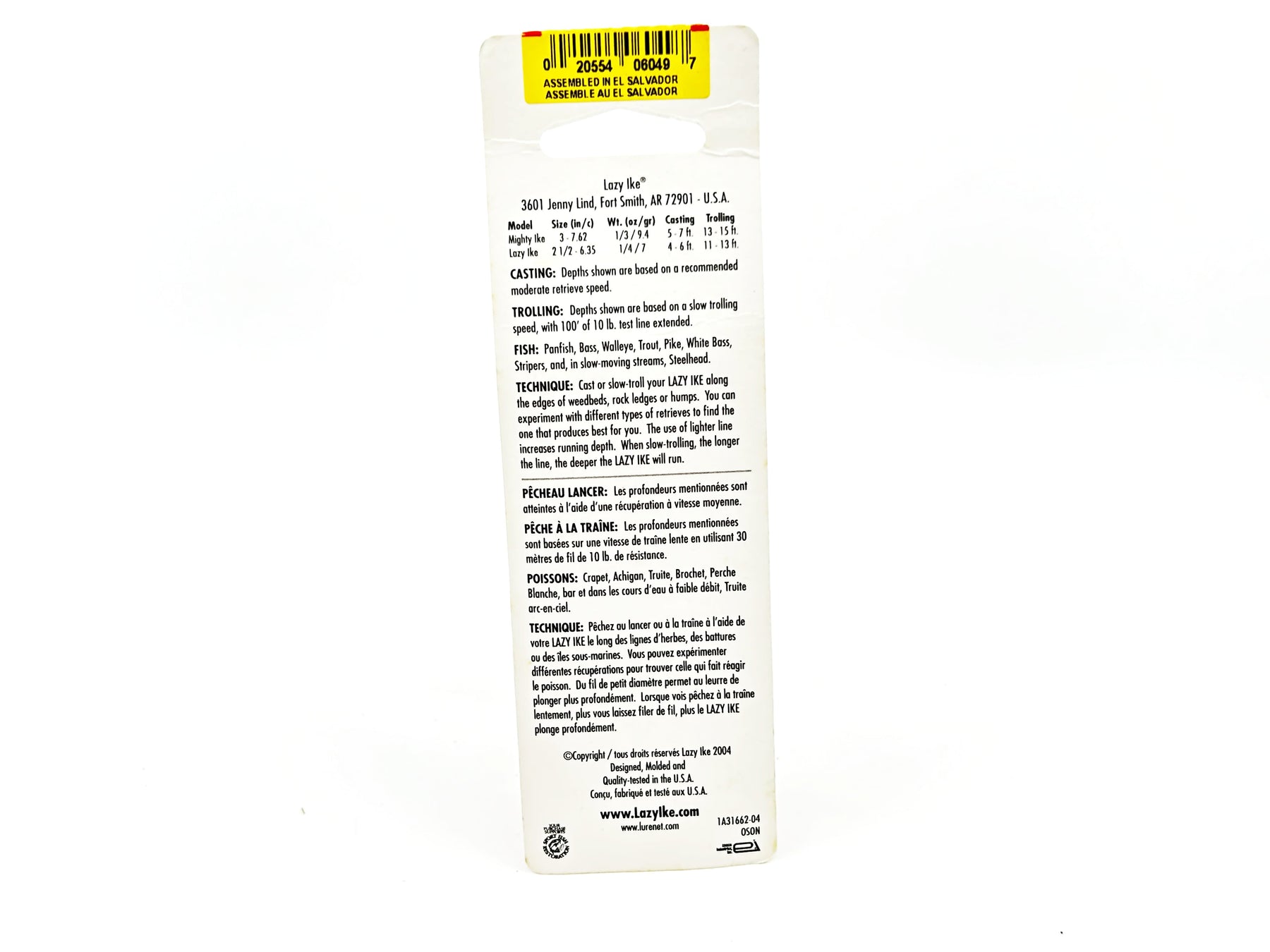 The original Lazy Ike has caught more fish than just about any lure around. The Lazy Ike, has an erratic wobbling action that gamefish can’t resist. Many walleye fishermen caught their first limits with a Lazy Ike and a nightcrawler on the front treble hooks. The lazy, wobbling action of the Ike makes it a target for any gamefish. The Ike is designed for spinning/spincast or light baitcasting and can be either cast or trolled.