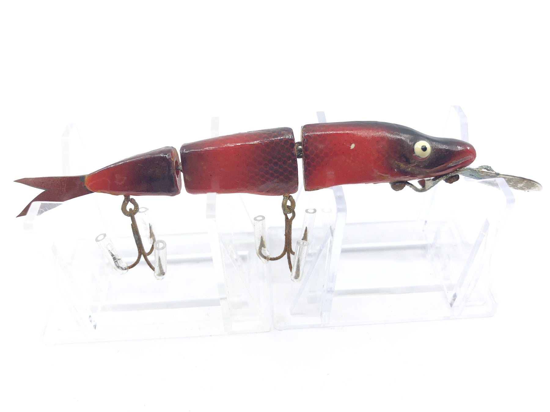 Bud Stewart / Rat Man Type Hammer Handle Minnow Red Perch Color.  About 4" body length not including lip or tail.  Plastic lure with rubber type fin.  Used vintage lure overall good condition, see photos.  So tough to find these.  Buy it while you can, I don't see these very often.