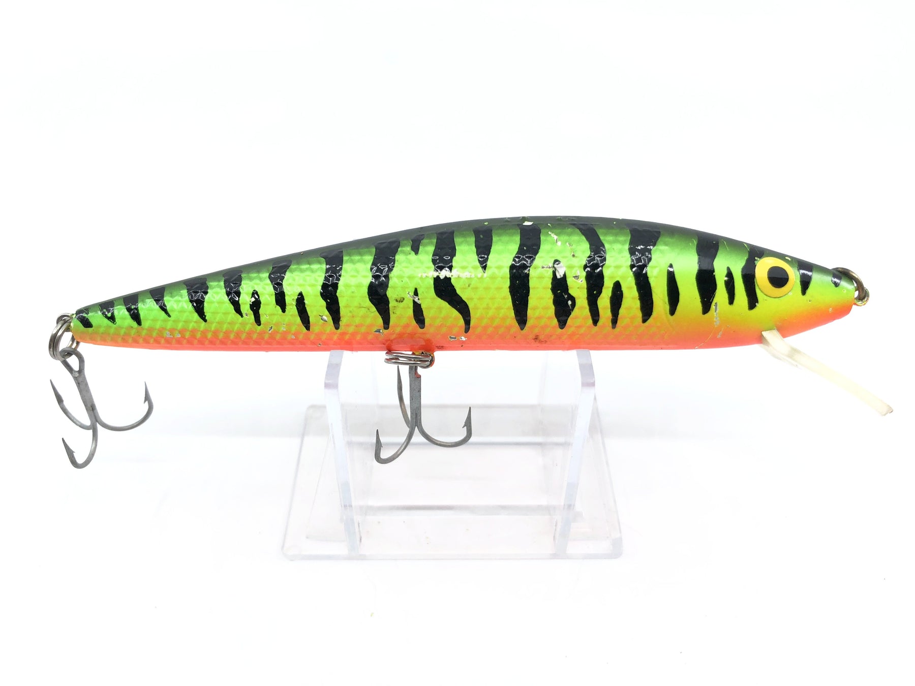 Fire Tiger Walleye Minnow.  About 5" long.  Used but ok condition with some dings, see photos.  Unknown maker.  Collect or fish.