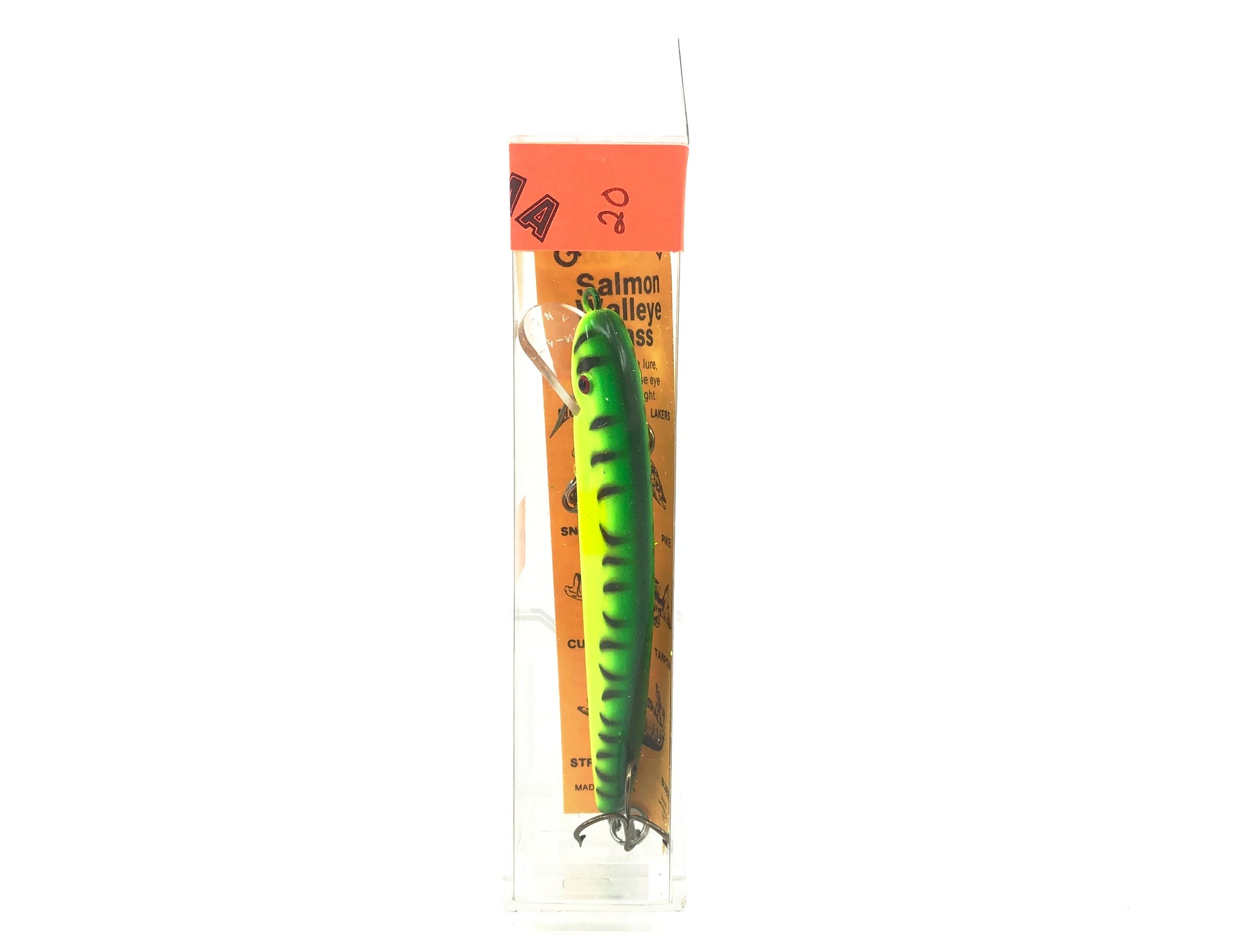 Grandma Classic 4 1/2", #12 Firetiger Color w/Box. Vintage Grandma in an uncommon box packaging. Lure is new in box and the box is in good condition. See photos. Great musky bait. Grab this one while you can.