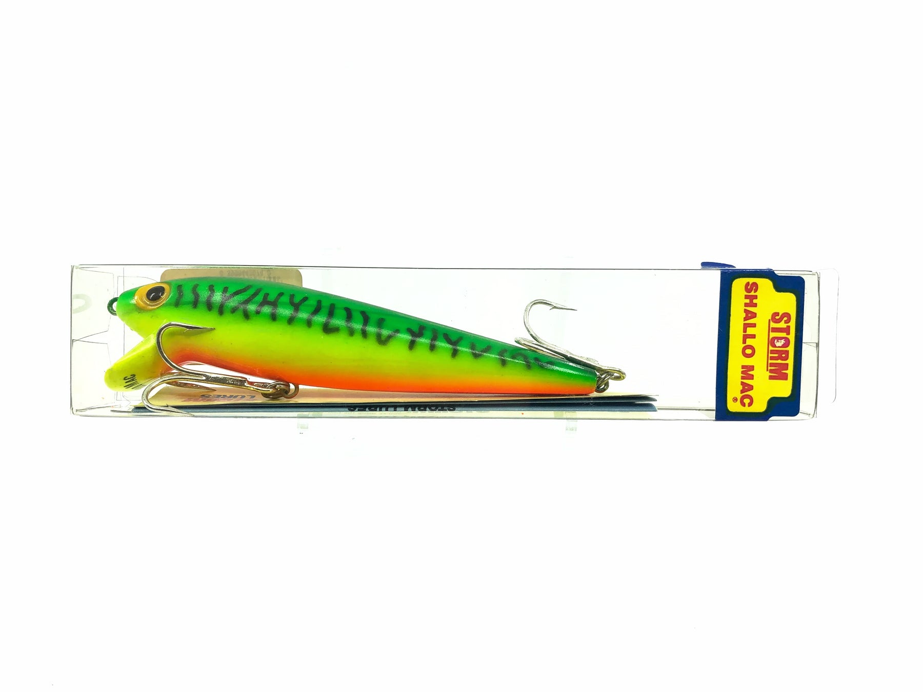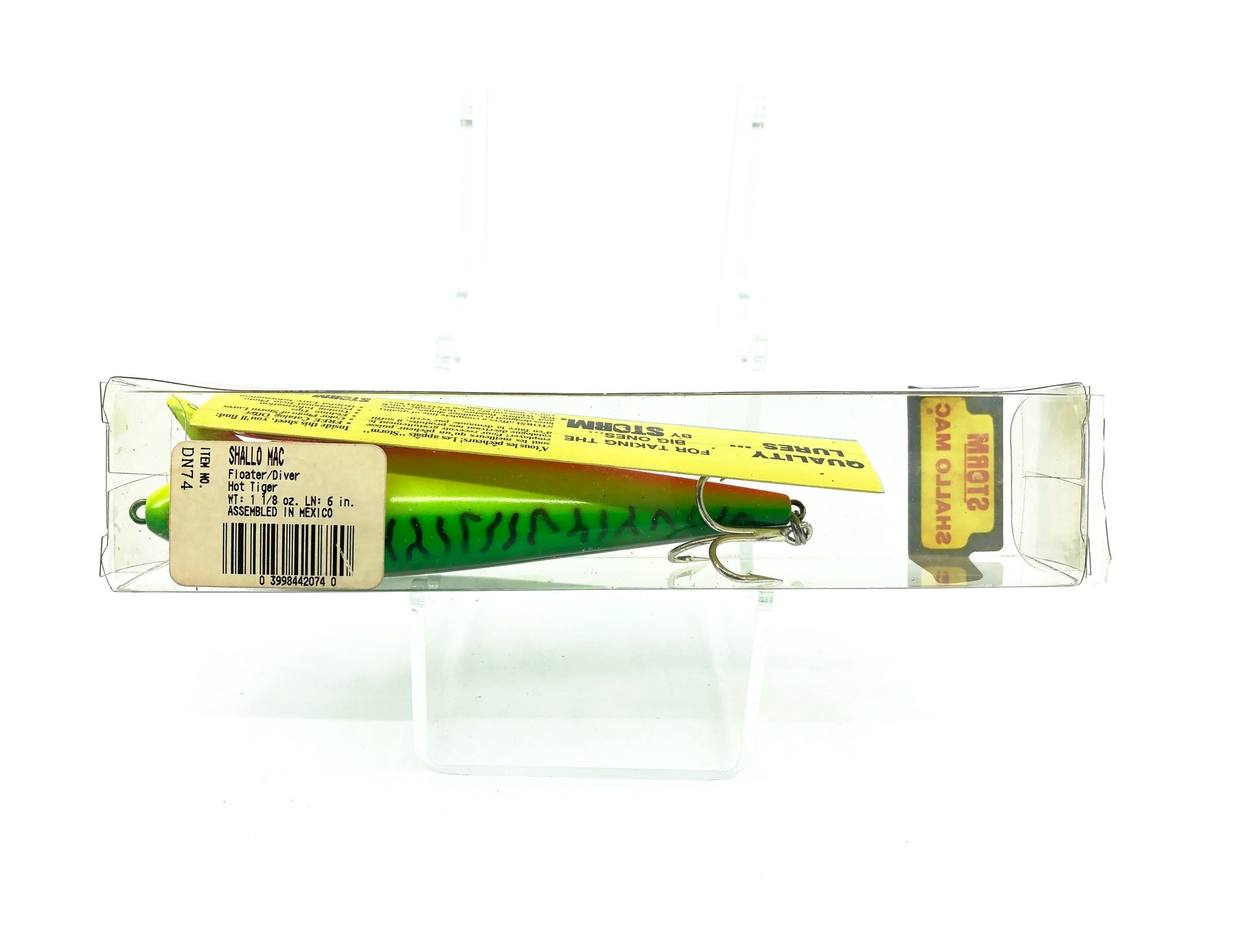 Storm Shallo Mac DN74 Hot Tiger Color in Box. About 5 1/4" long. This bait is new in box and the box is in overall good condition. See photos. Tougher lure to find. Fish or collect a classic.