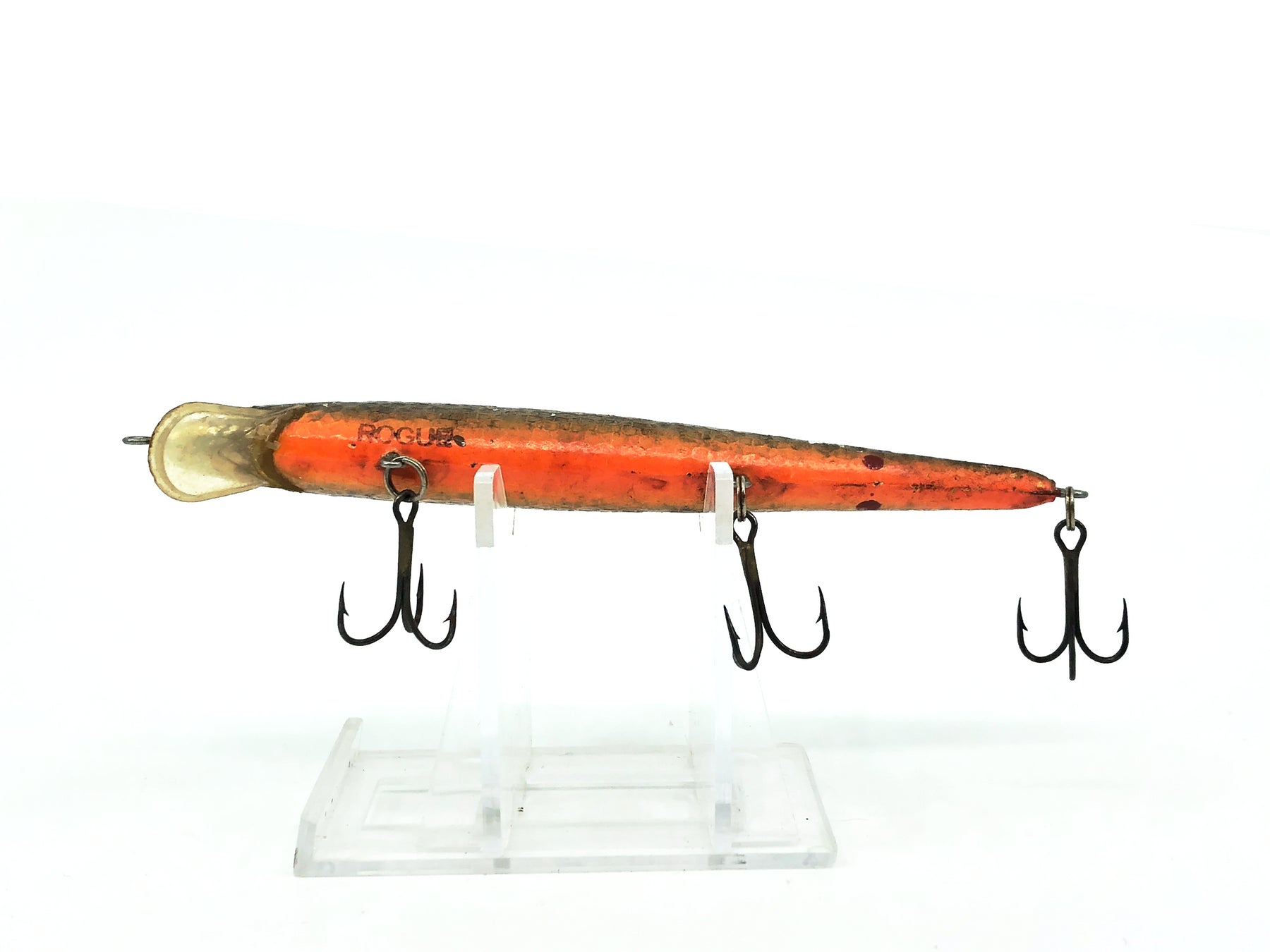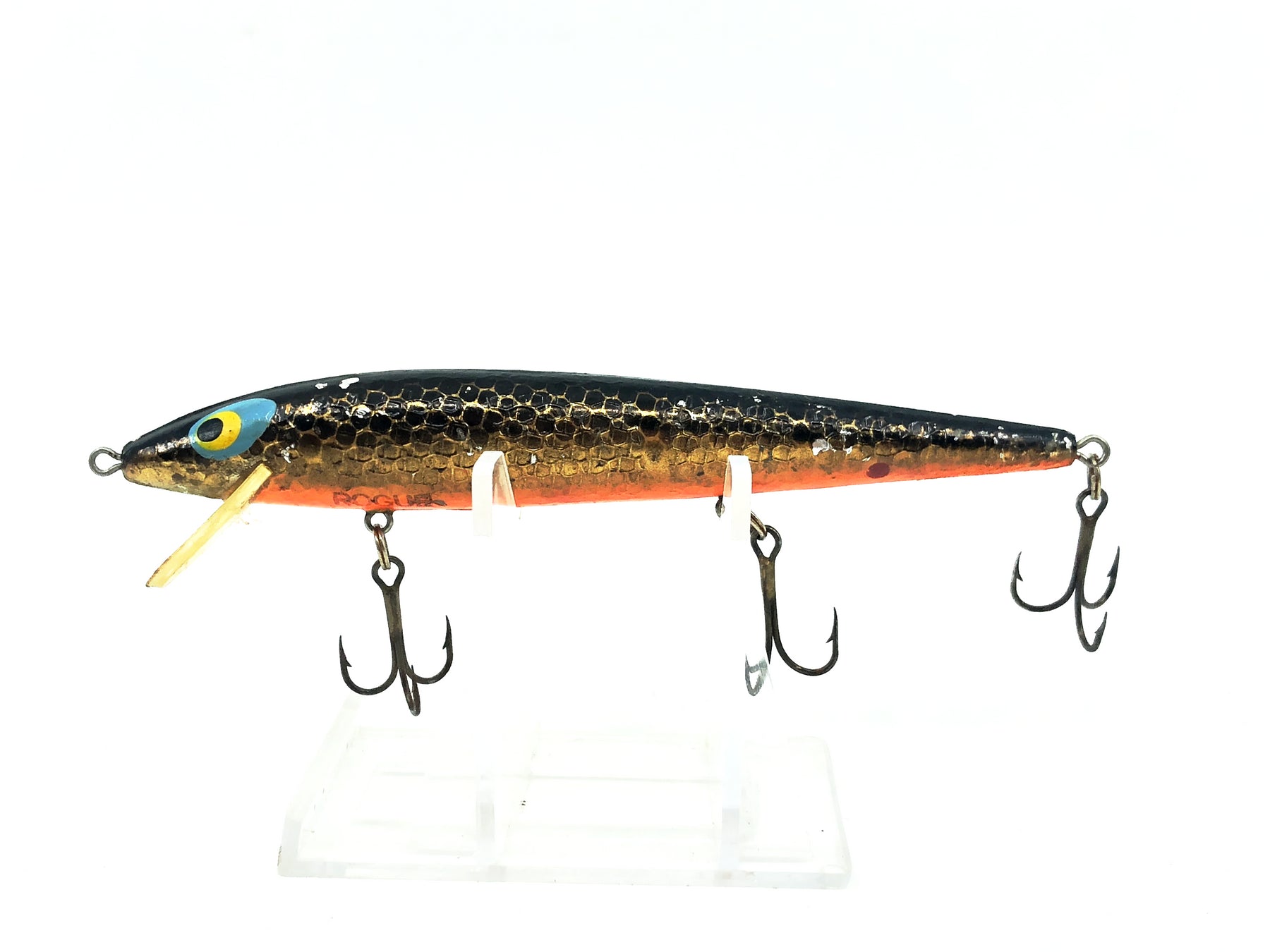 Smithwick Rattlin' Rogue, Gold Rogue Color. Classic lure here for a good price. This lure is about 4 1/2" long. Used with some minor wear and marks but in overall ok condition. Fish or collect, see photos.