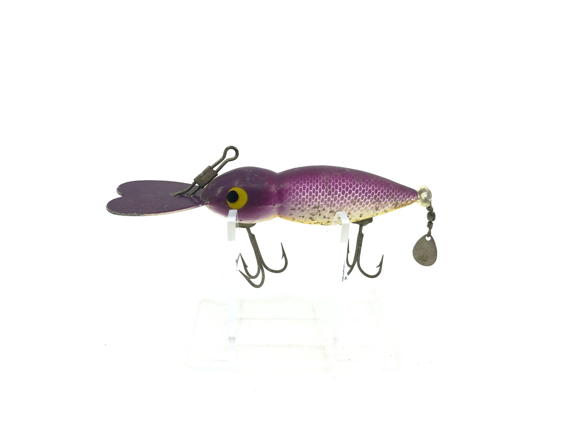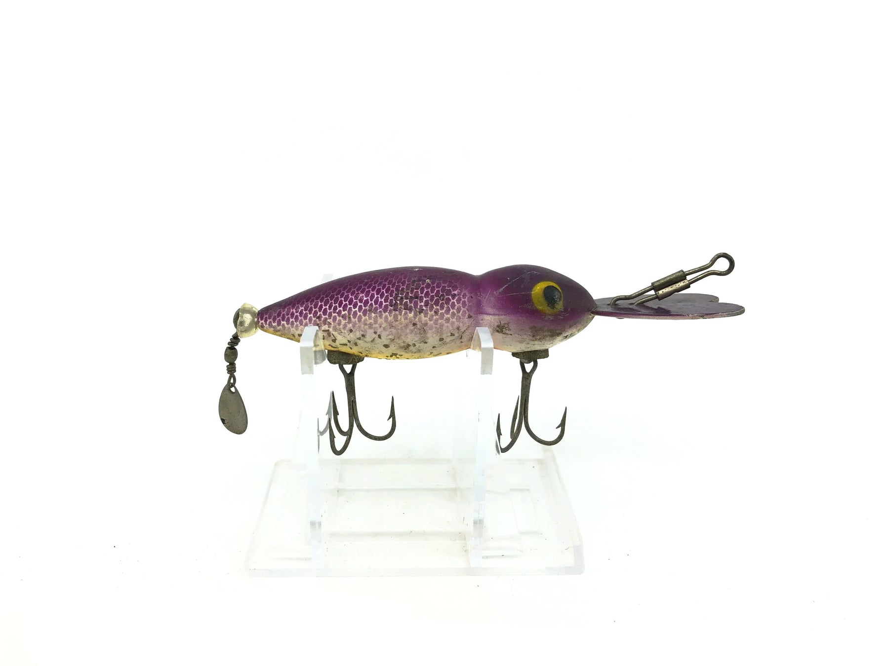 Whopper Stopper Hellbender, Purple Back/Silver Sparkle Color. About 3 1/2" long including the lip. Used vintage lure with some wear but overall good condition. These lures are collectible and highly sought after by fisherman. Killer on bass! Fish or collect this vintage classic bait. See photos.