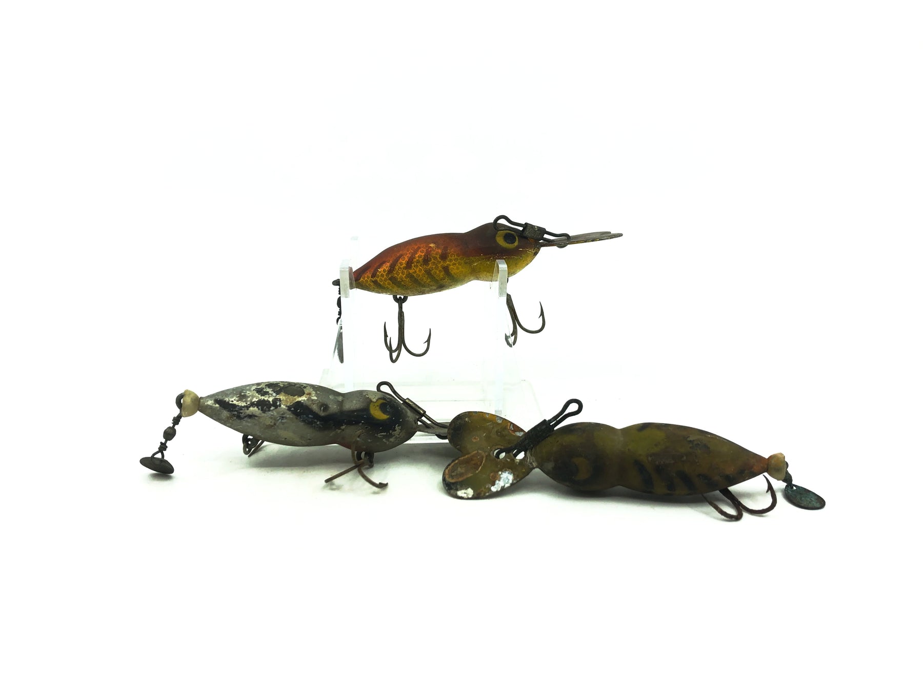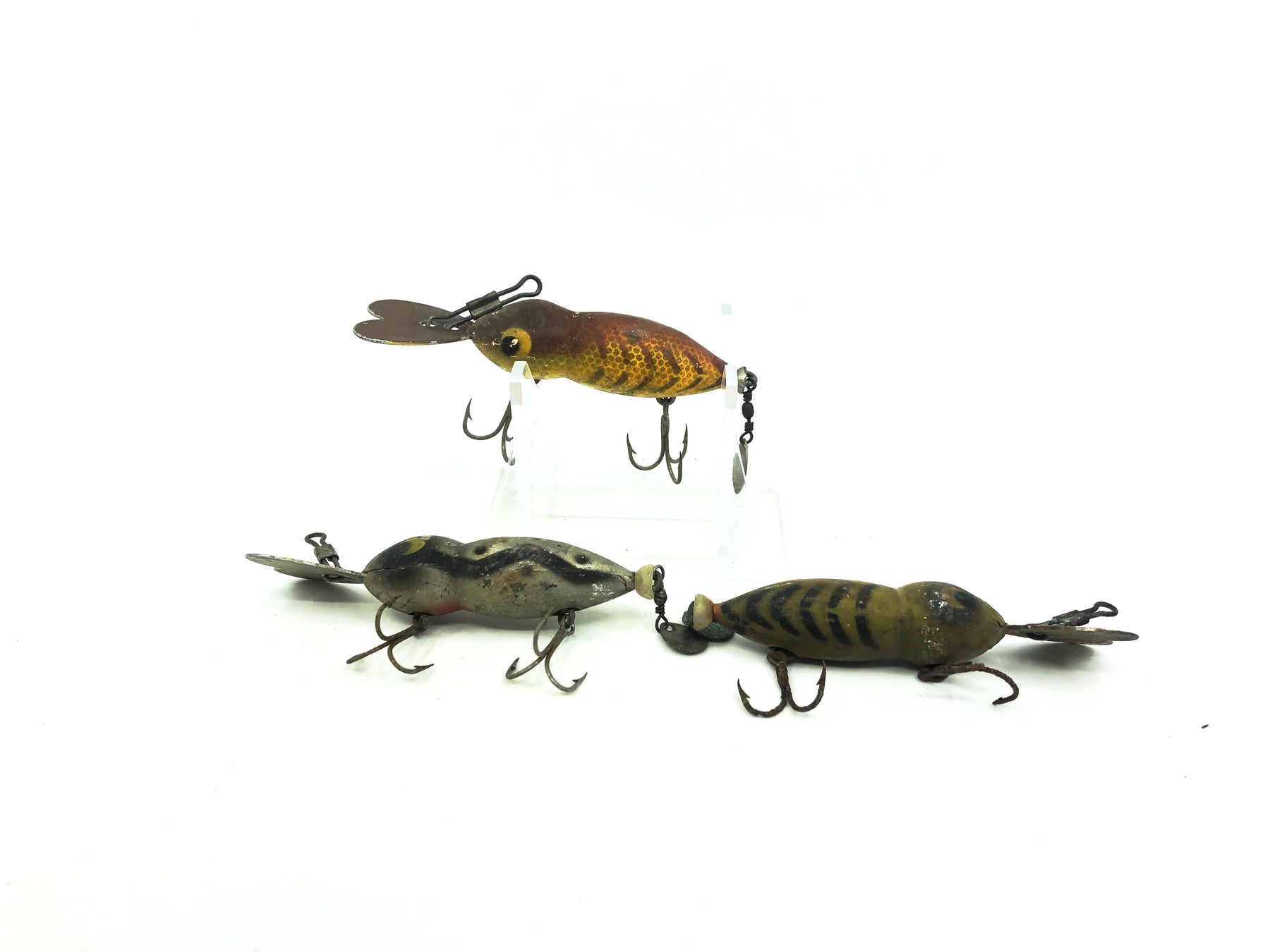 Hellbender Whopper Stopper Trio. This pack includes three smaller sized Whopper Stoppers that are about 3" long with the lip. All lures range in color and condition however everyone has some degree of wear, see photos. Great to fix up a little and take back out fishing.