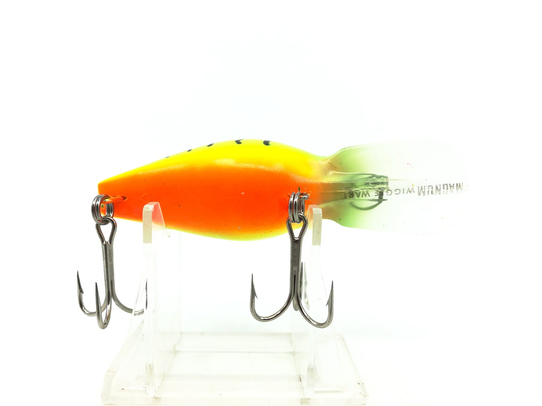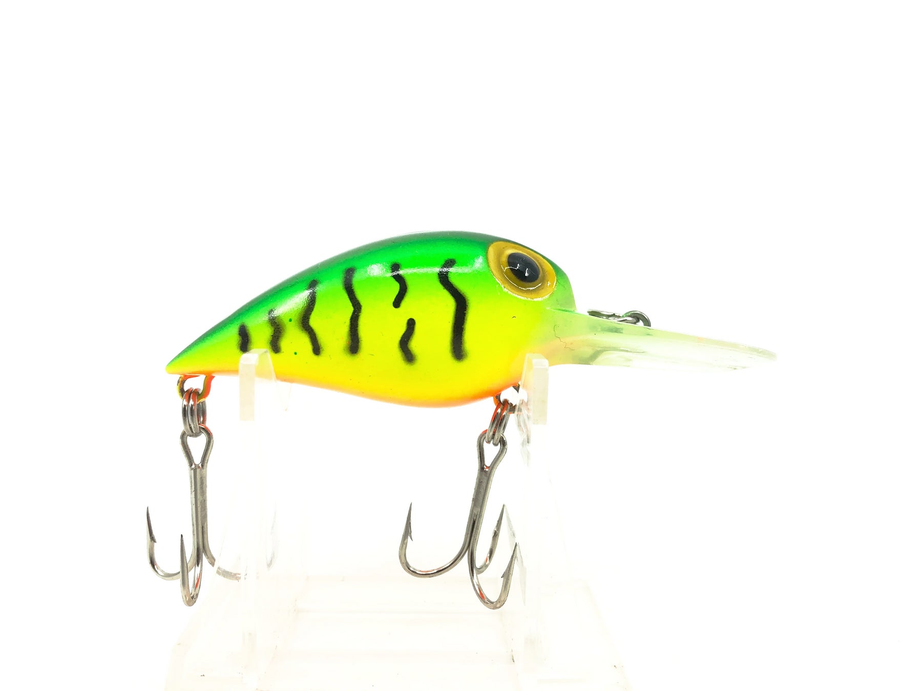 Storm Magnum Wiggle Wart AV74 Fire Tiger Color.  Great pre-Rapala Storm bait here.  About 3 3/4" long including lip (2 1/2" body). This bait is used but appears to have never been fished before and is in overall great condition, although it does has a slight dimple on the back. See photos.