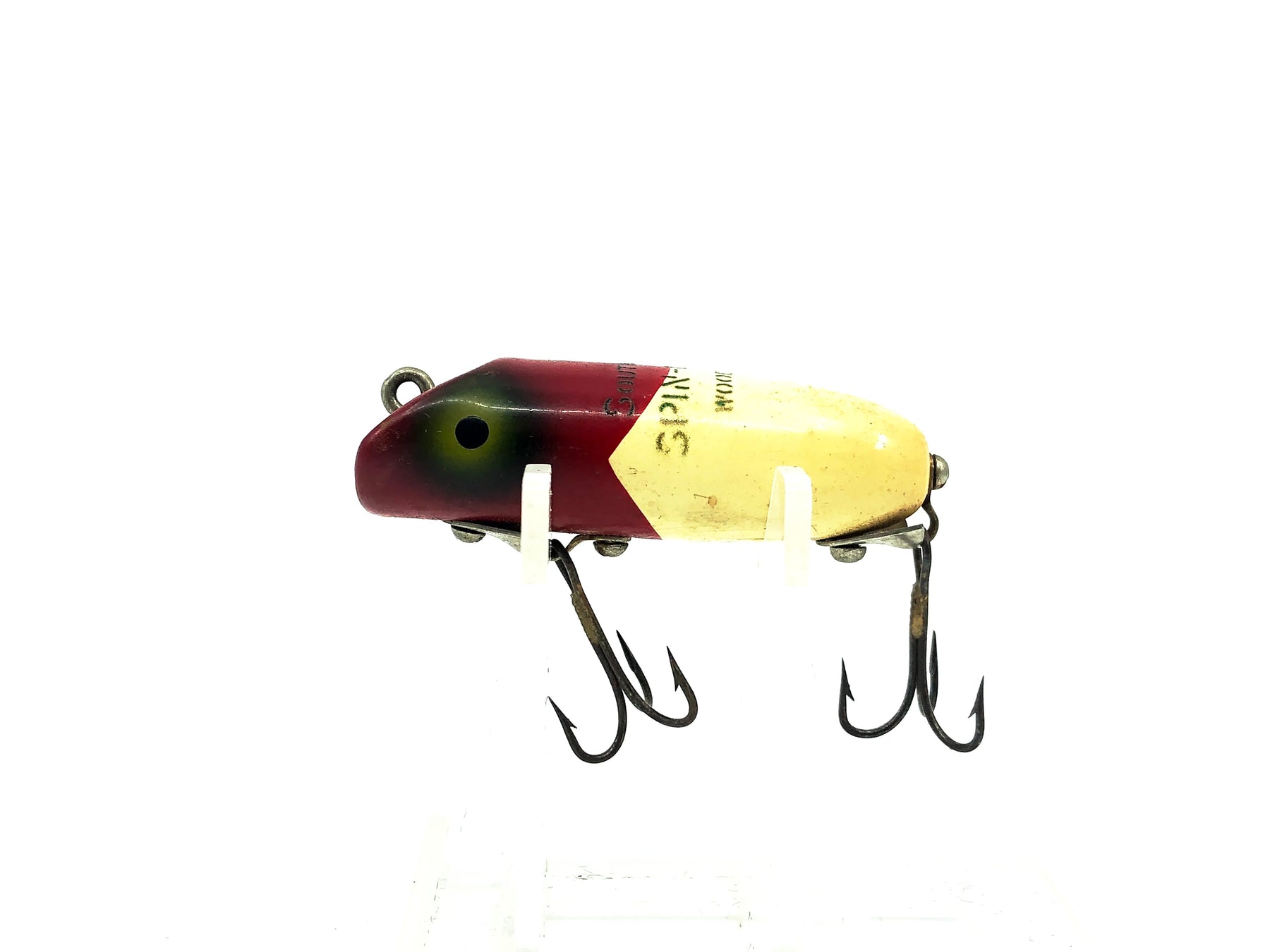 South Bend Spin-Oreno, RW White/Red Head Color. Used lure in good condition with some minor wear and marks. About 2 1/8" long. Newer painted eye model. This classic South Bend lure would look great in your collection or tackle box. See photos.