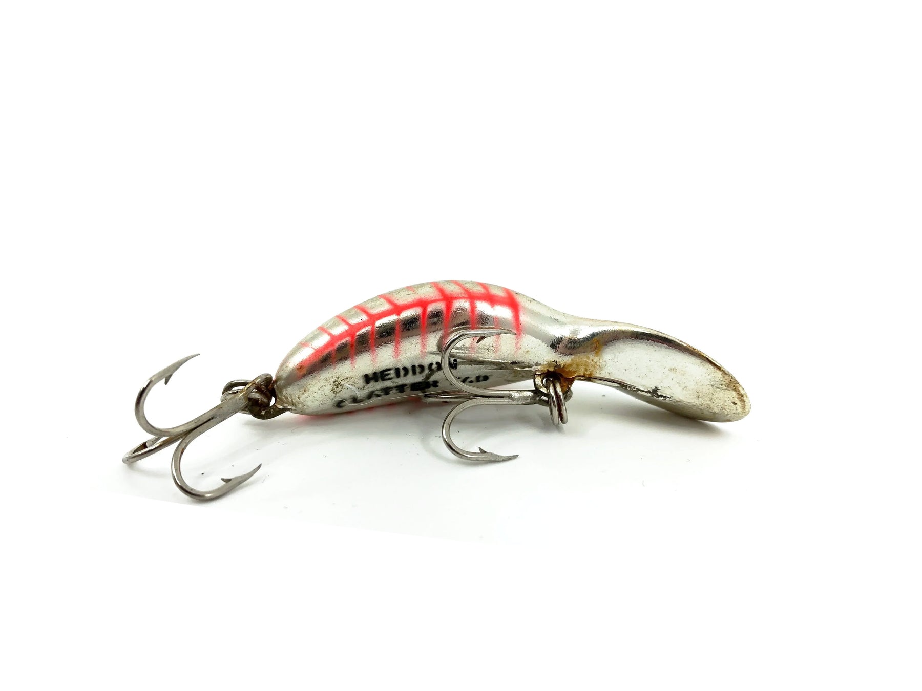 Nothing sounds quite like it! Heddon puts a "clatter in a lure. Heddon's hydronic experts have scientifically sized and positioned a sphere that rattles even as the lure works through the water. Clatter Tad combines the same quick darting, flashy action of the silver minnow with the fantastic fish catching ability of the Tadpolly. Give your sales The Heddon Edge with a Clatter Tad -on bass, walleye and lunker muskies. They love the fast, underwater wiggle. They love that sound! -Excerpt from 1984 Heddon Catalog