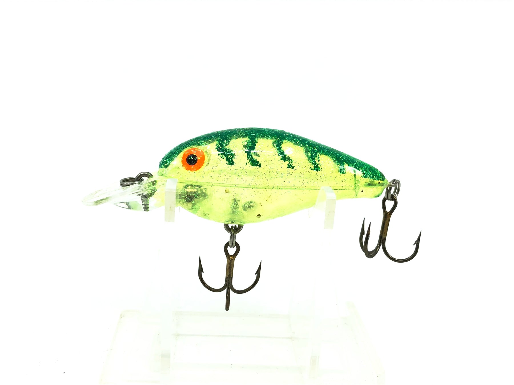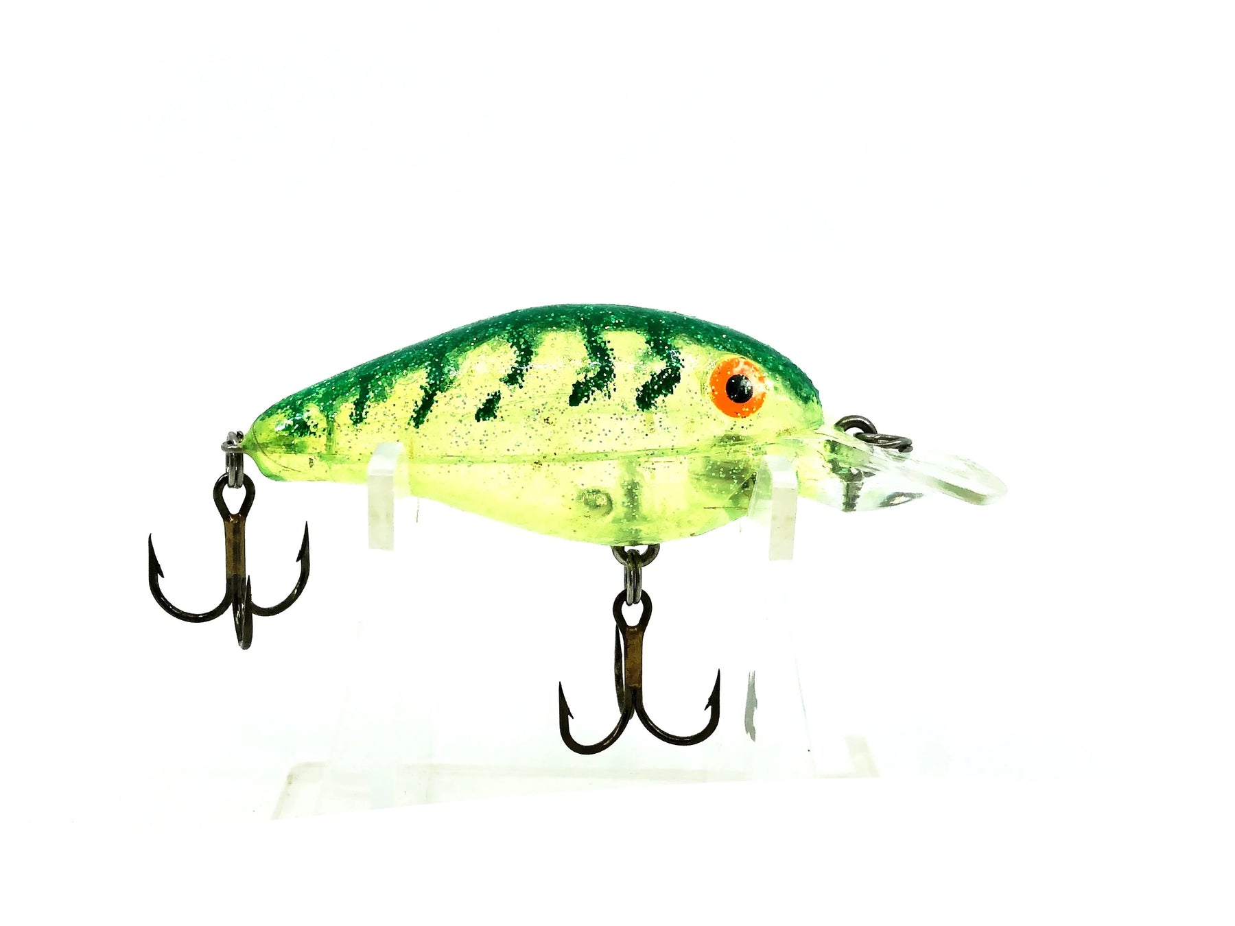 Rebel Crank-R, Transparent Perch Color. About 2 5/8" long with lip. Lure is used but in great condition with minor wear. See photos.