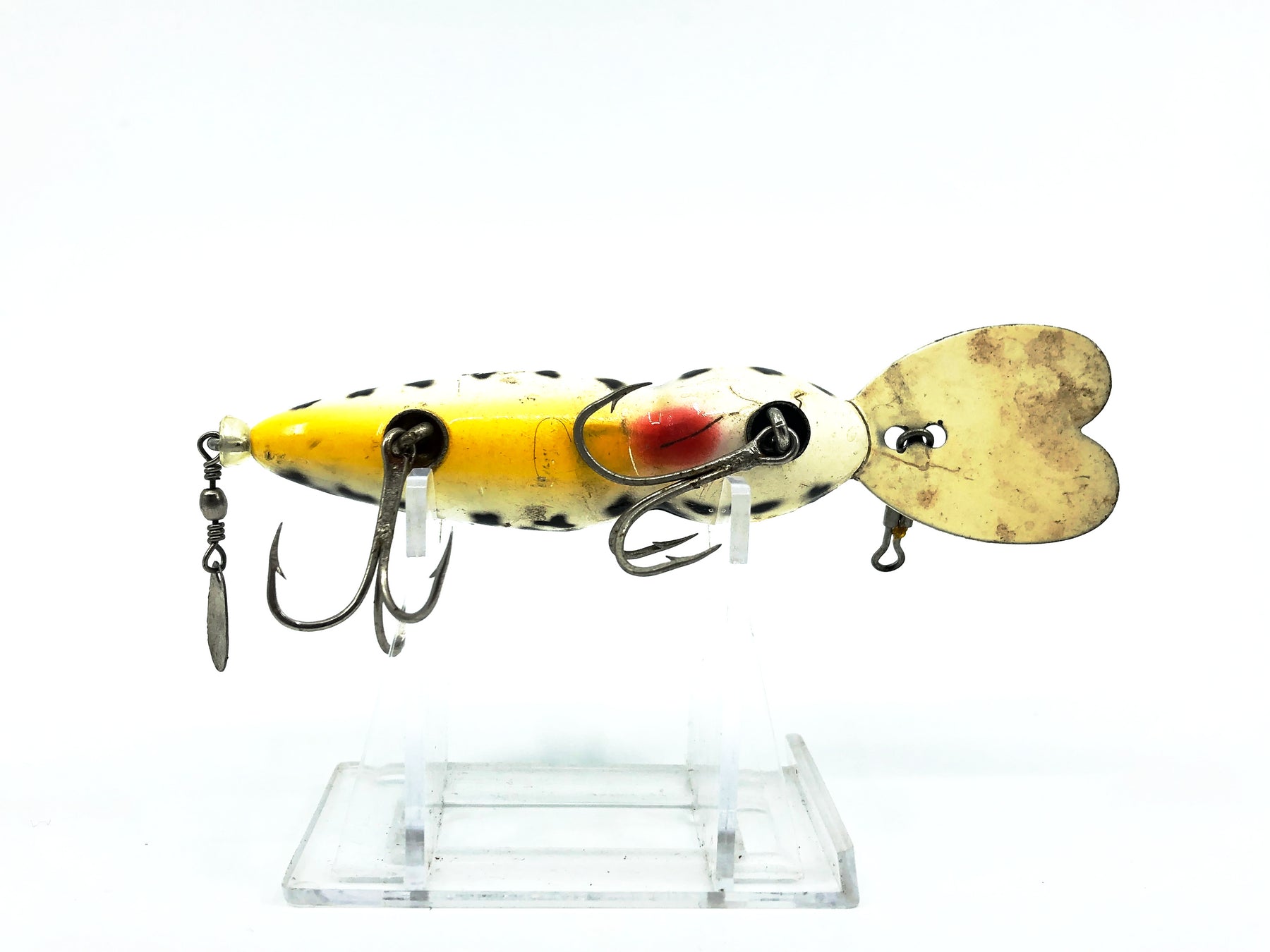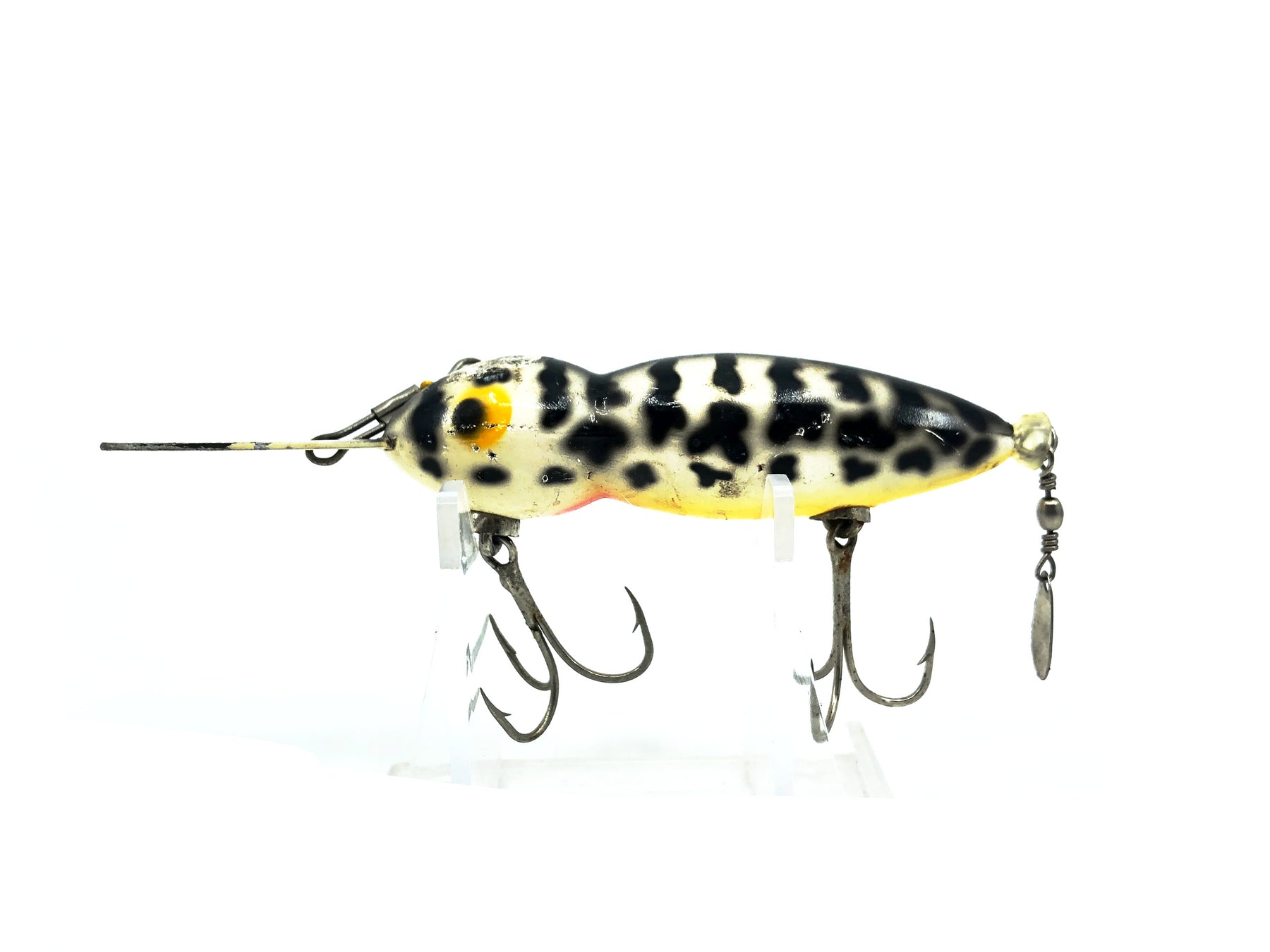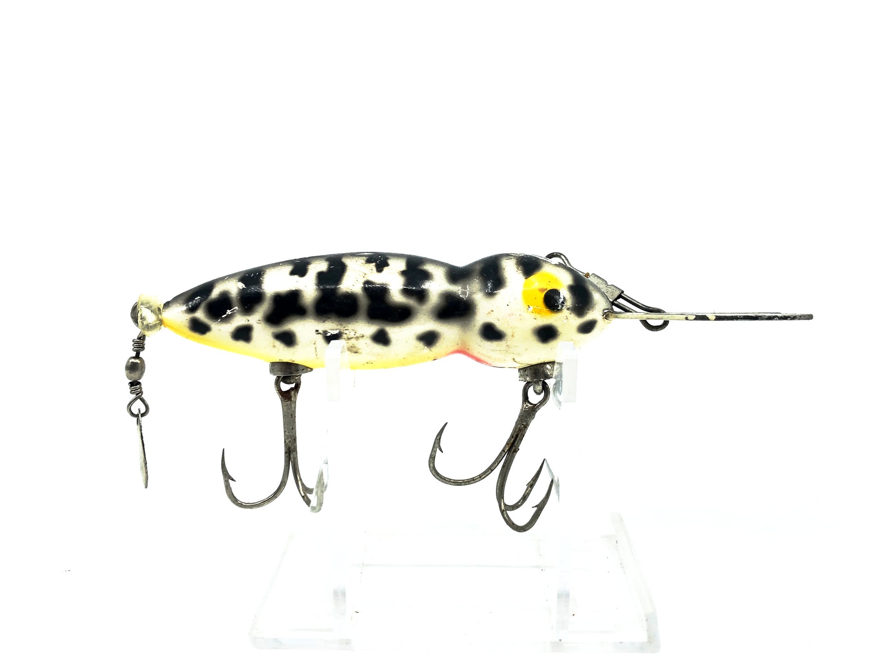 Whopper Stopper Hellbender, Coachdog Color. About 4 1/8" long including the lip. Used vintage lure with some wear and marks but overall ok condition. These lures are collectible and highly sought after by fisherman. Killer on bass! Fish or collect this vintage classic bait. See photos.