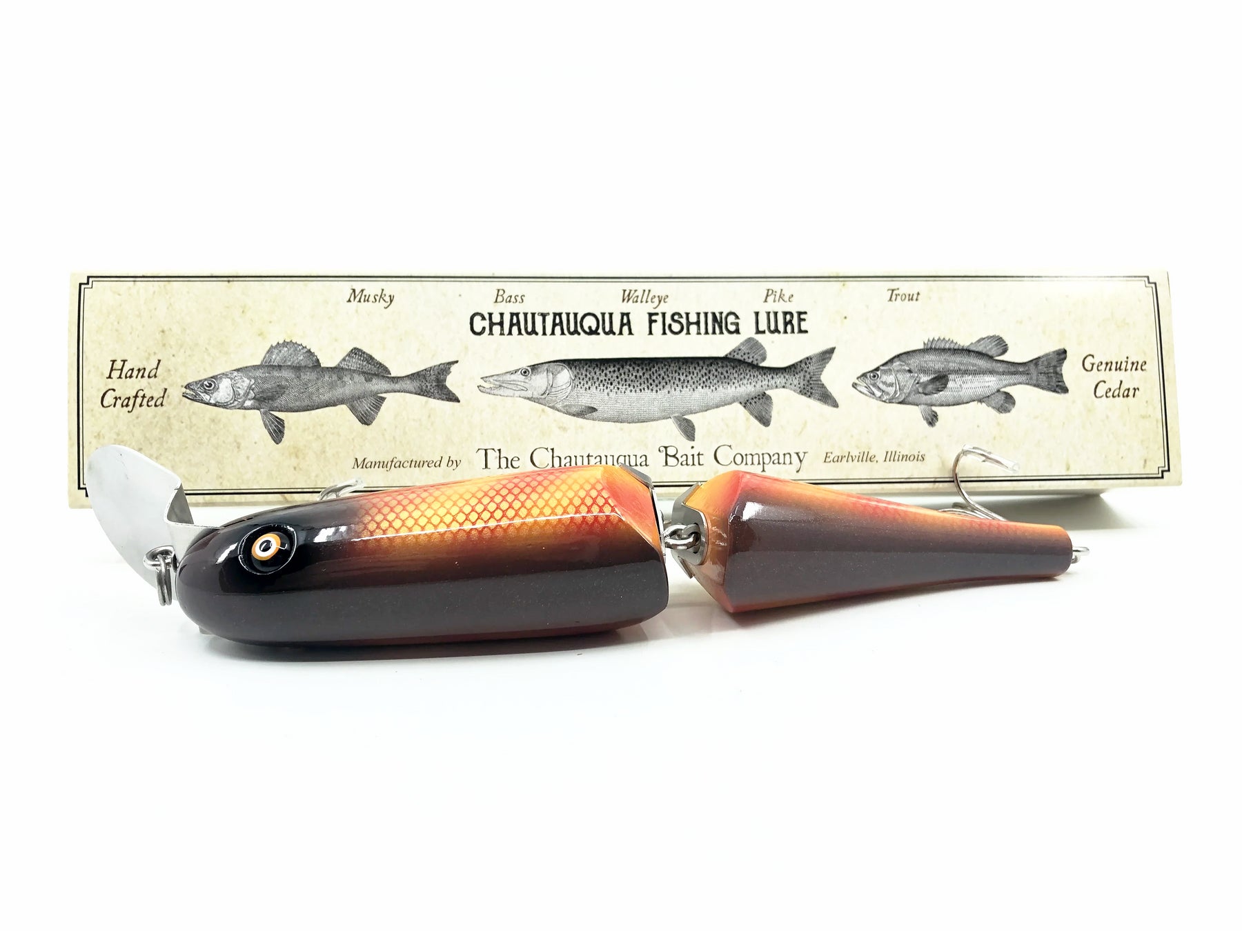 The Jointed Chautauqua Minnow features flashy side rolls and a powerful shake. A large crankbait made for fishermen targeting trophy musky. Features an adjustable, stainless steel diving lip. Dives deep—up to 8ft when casting.