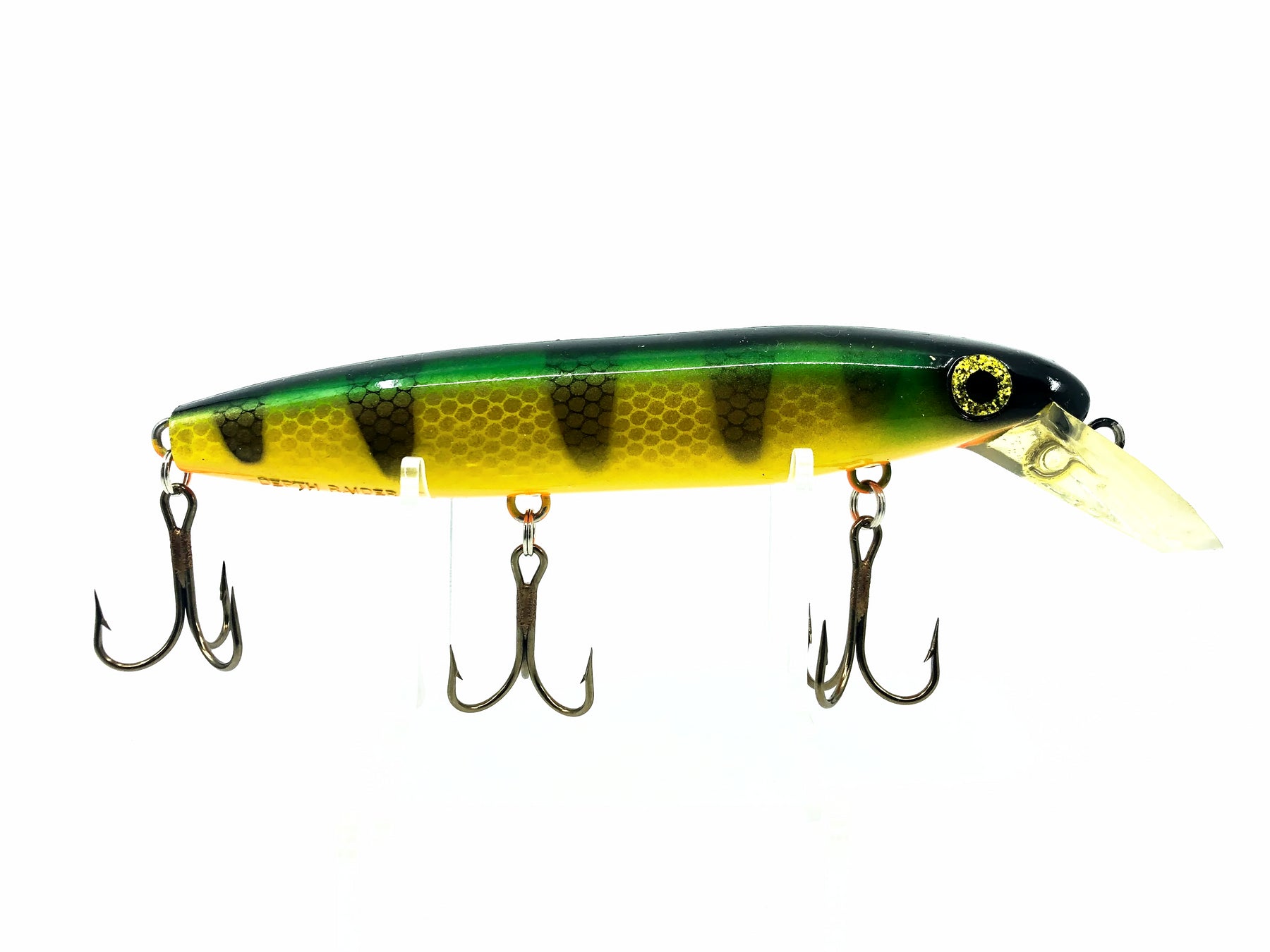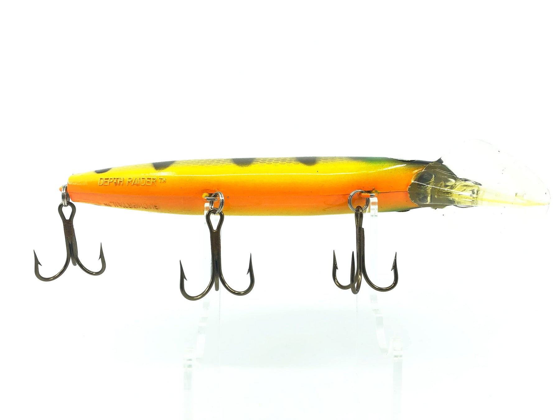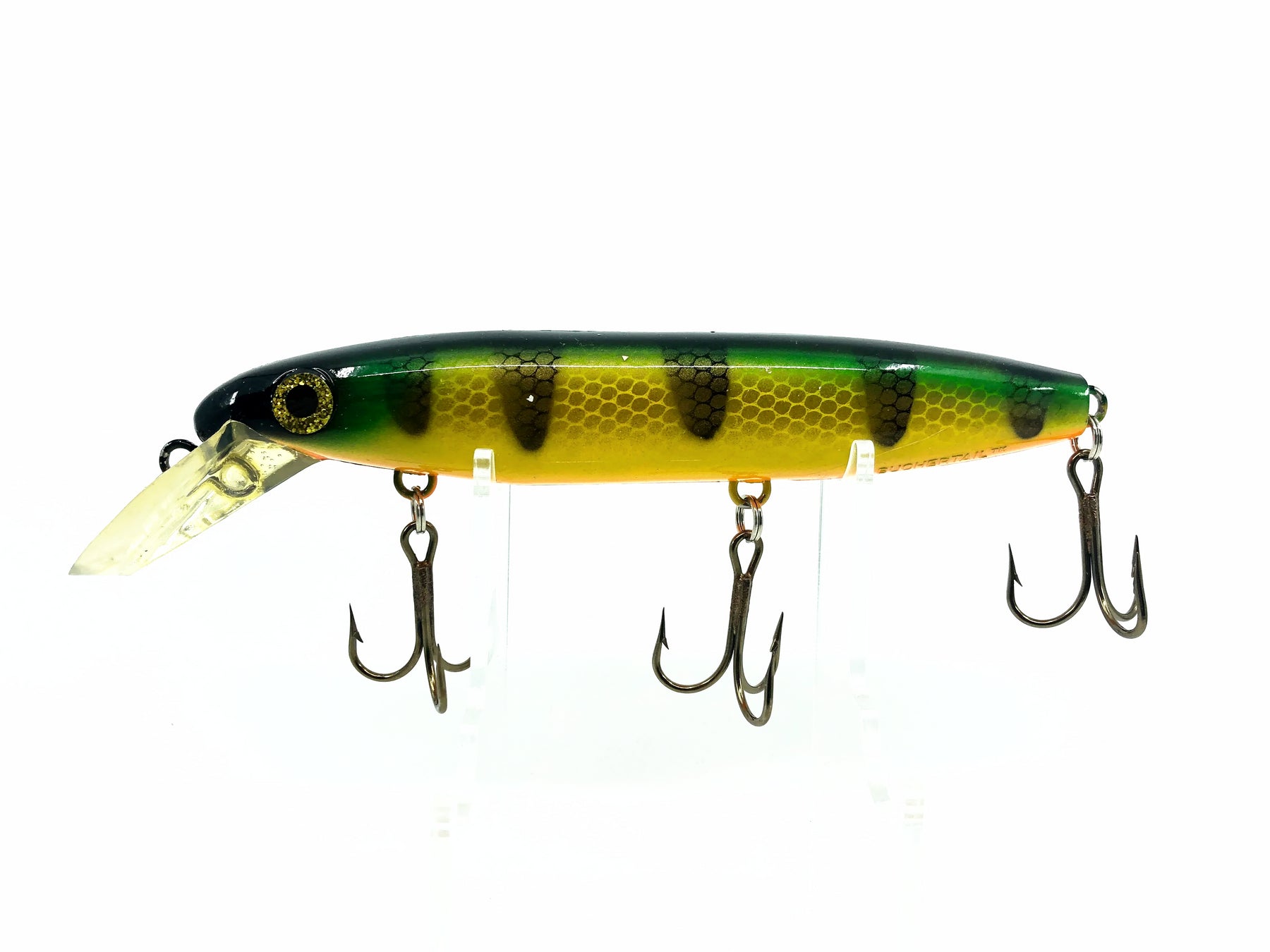 Joe Bucher Tackle Co. Buchertail Depth Raider 8", Perch Color. Classic Wisconsin lure brand here. About 8" long including the lip. Lure is used but is in great condition.