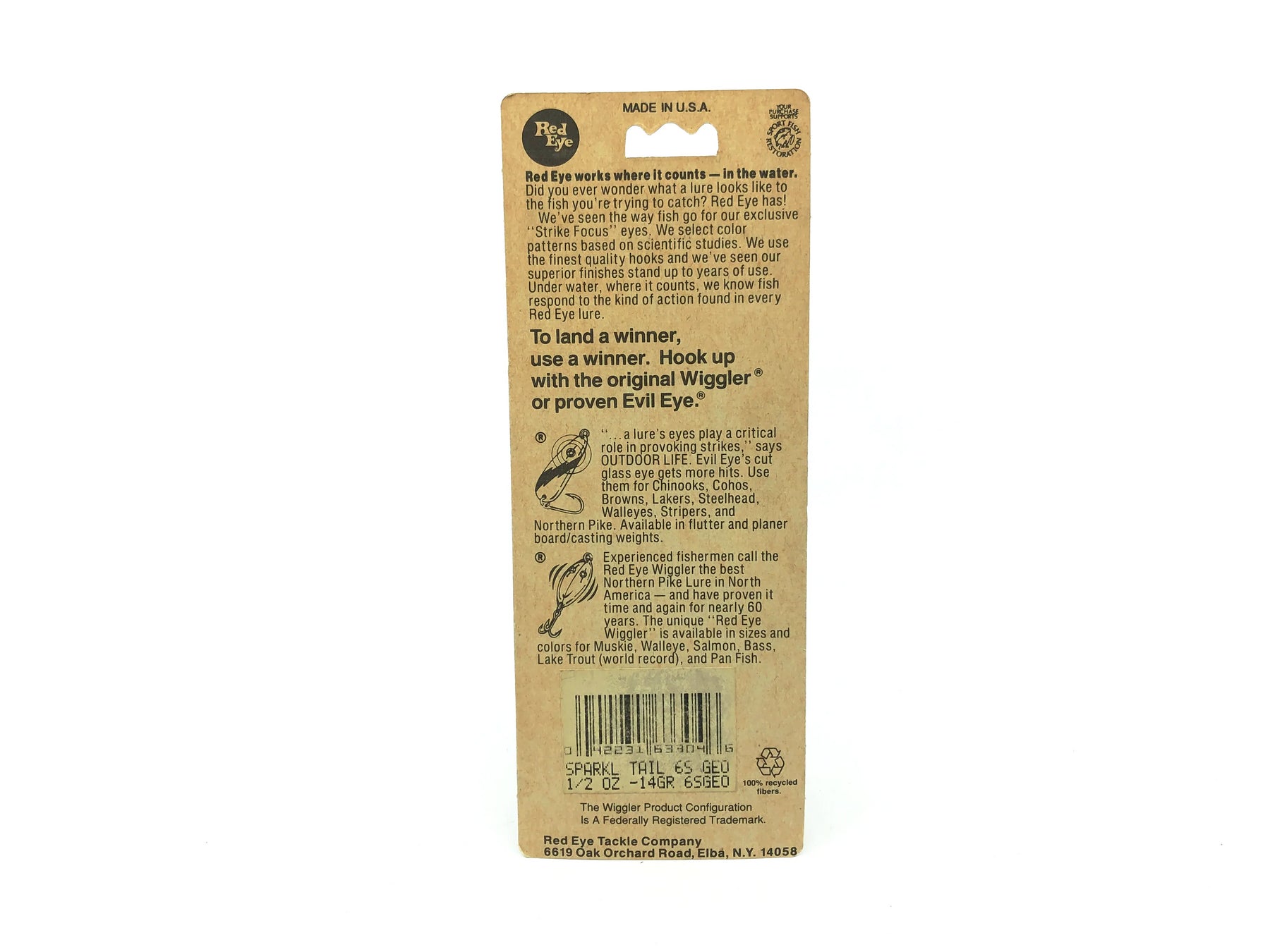 Sparkle Tail, Fire Tiger Color on Card. Great lure here. Awesome for walleye and bass. Great to collect.  About 3 3/4" long and weighs 1/2oz. Lure is new on card. The card has some minor wear but is in overall good condition, see photos. This is a Red Eye Tackle Company sparkle tail.