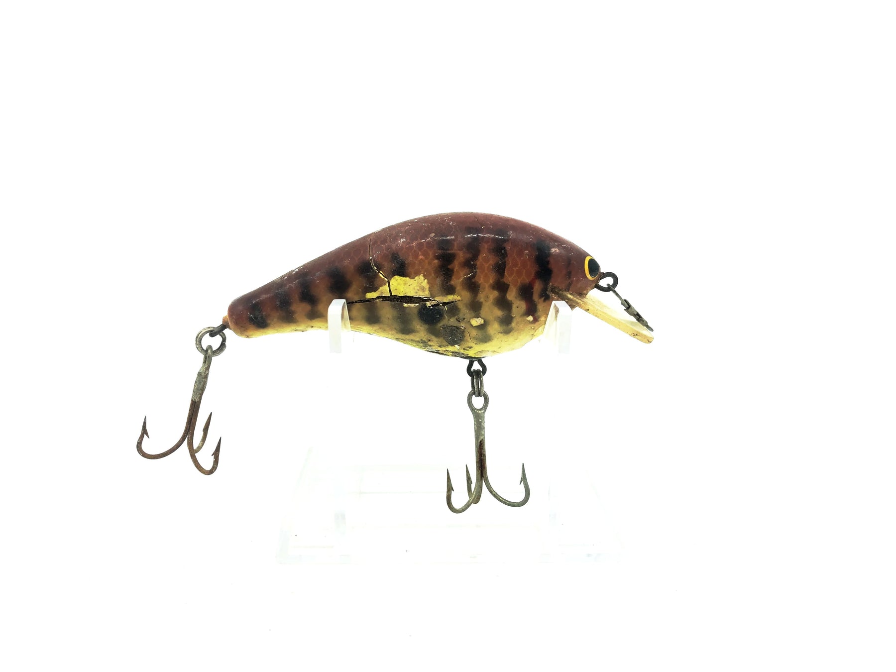 Bagley Balsa BB3 BB3-DC9 Dark Crayfish on Chartreuse Color.  About 3" long body.  Used with a good amount of wear and markings but overall fair condition, see photos.  Fish, collect or fix up.  Great Florida lure here. Tough to find these old Bagley's.