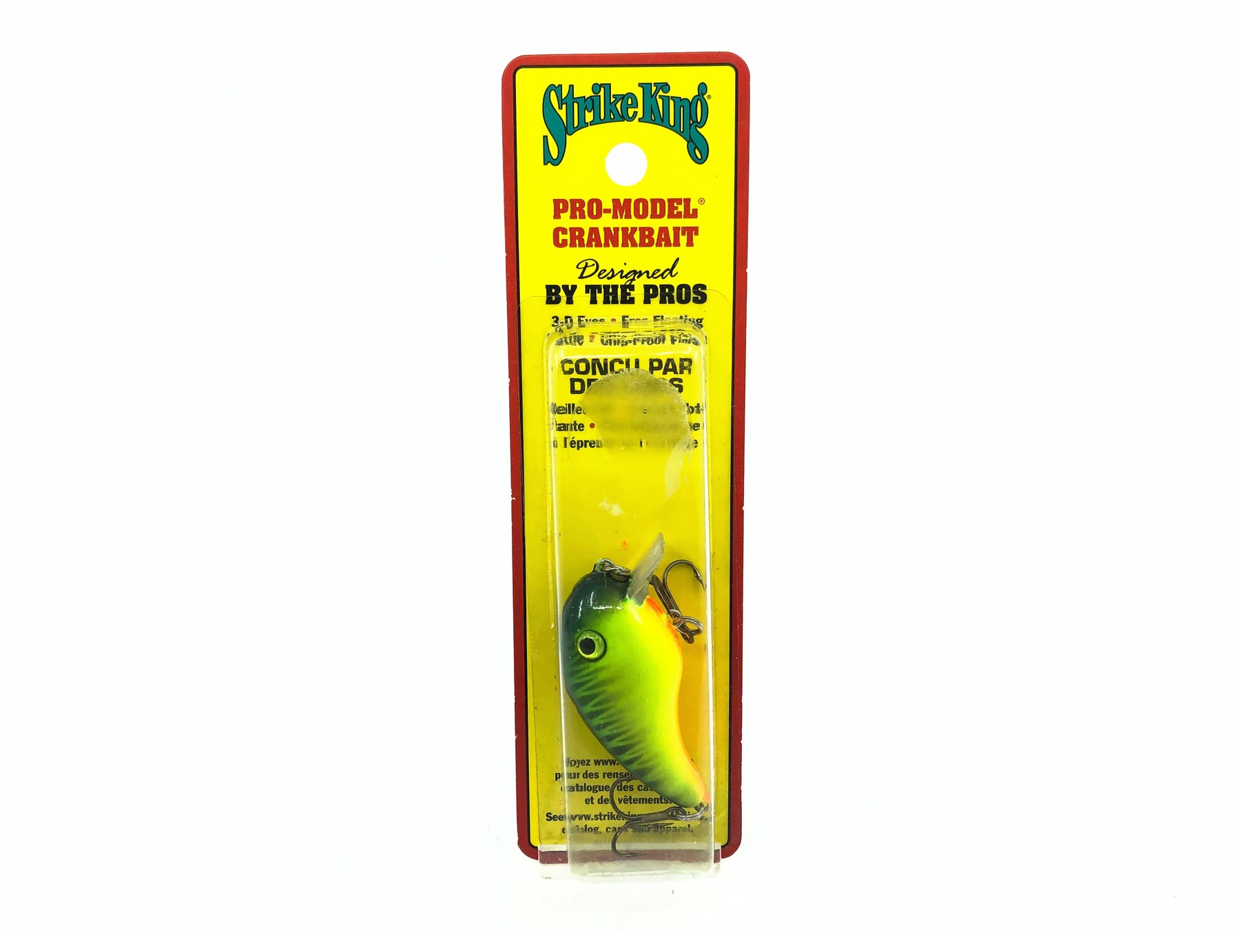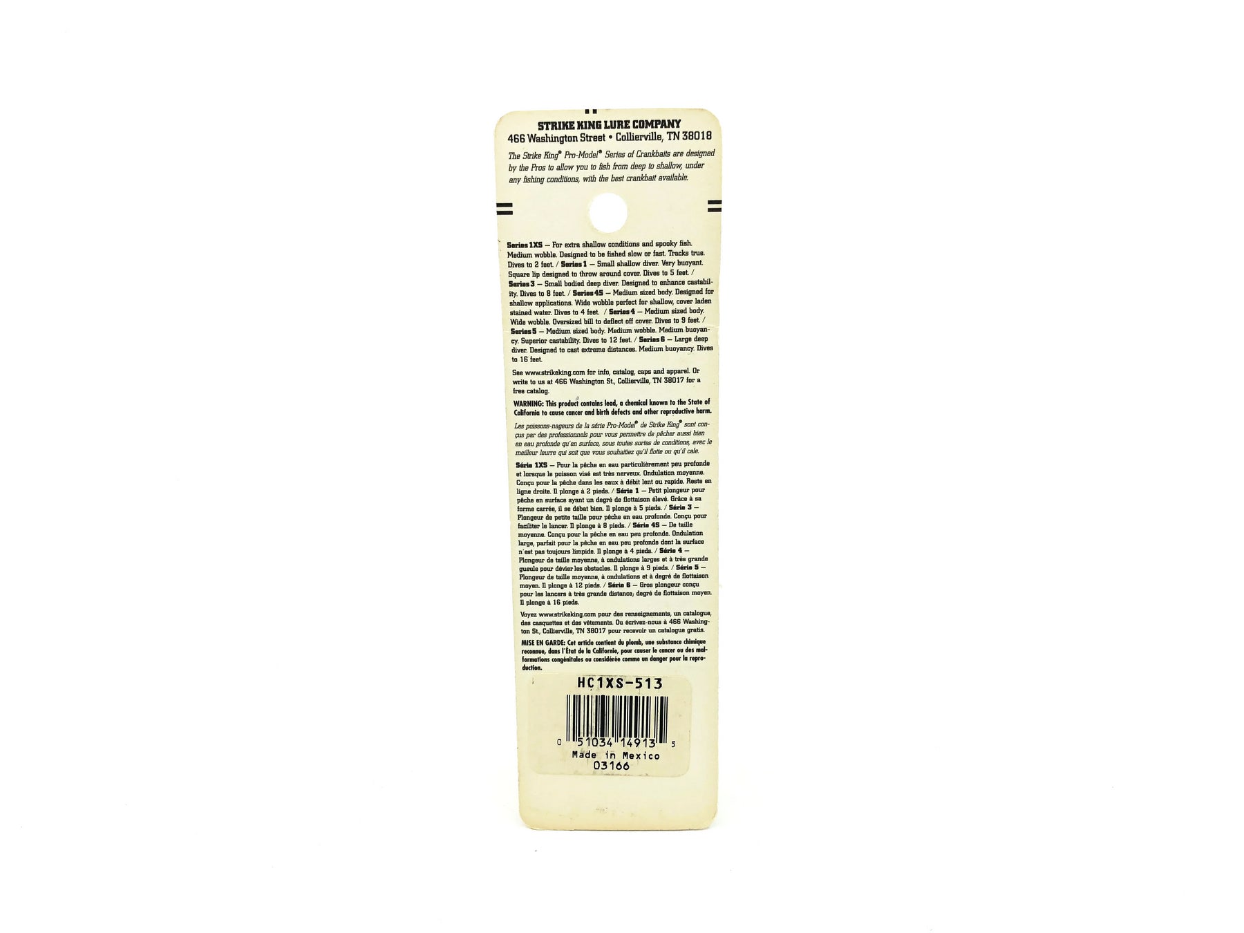 Strike King Pro Model Series 1XS Super Shallow Crankbait, Perch Color on Card. This bait is new on card and the card in in good condition. Lure is about 2 1/4" long including lip. See photos.