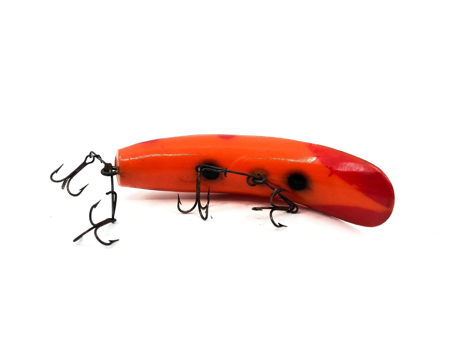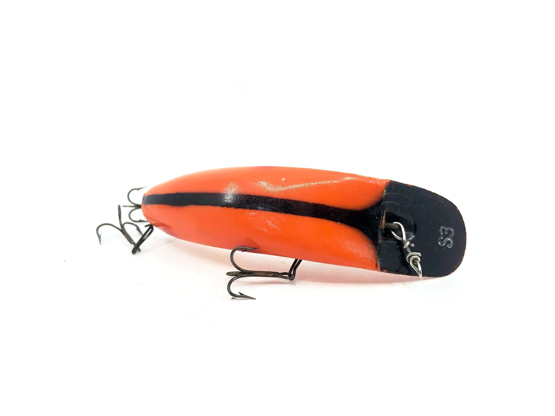 Helin Flatfish S3, LOB Light Orange Black Stripe Color.  About 3 5/8" long.  Used with some minor wear and marks but overall good condition, see photos.  One of the most successful fishing lures ever made.  Fish or collect!