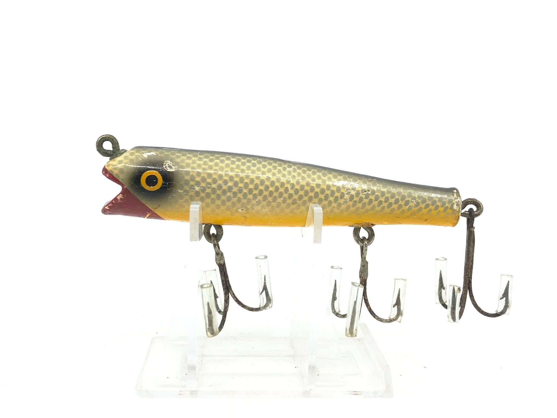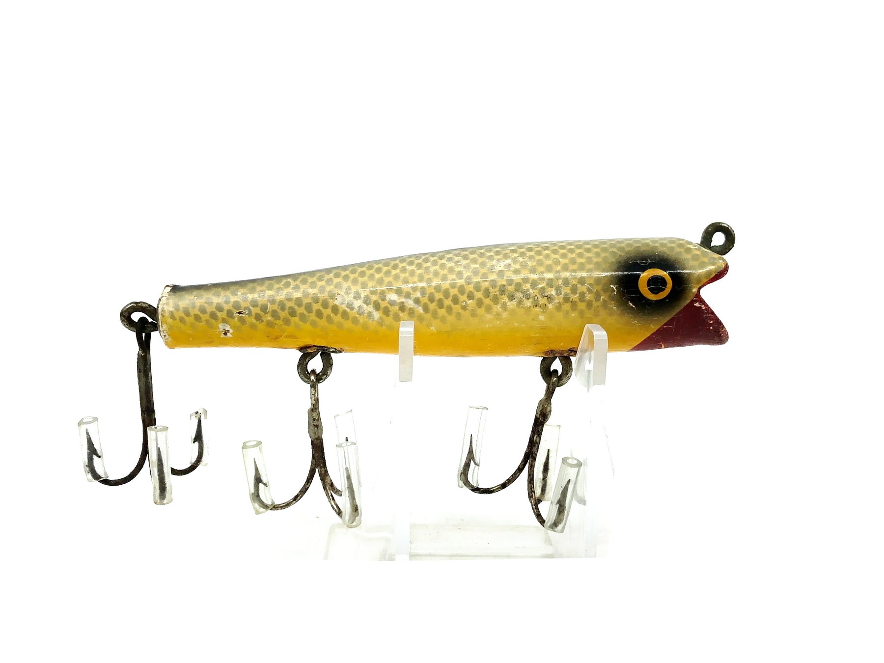 Vintage Eger Darter, Green Scale/Yellow Belly Color. Lure is about 3 3/4" long. This lure is used with some wear and marks but overall in good condition. This is an amazing vintage Florida made bait. See photos.