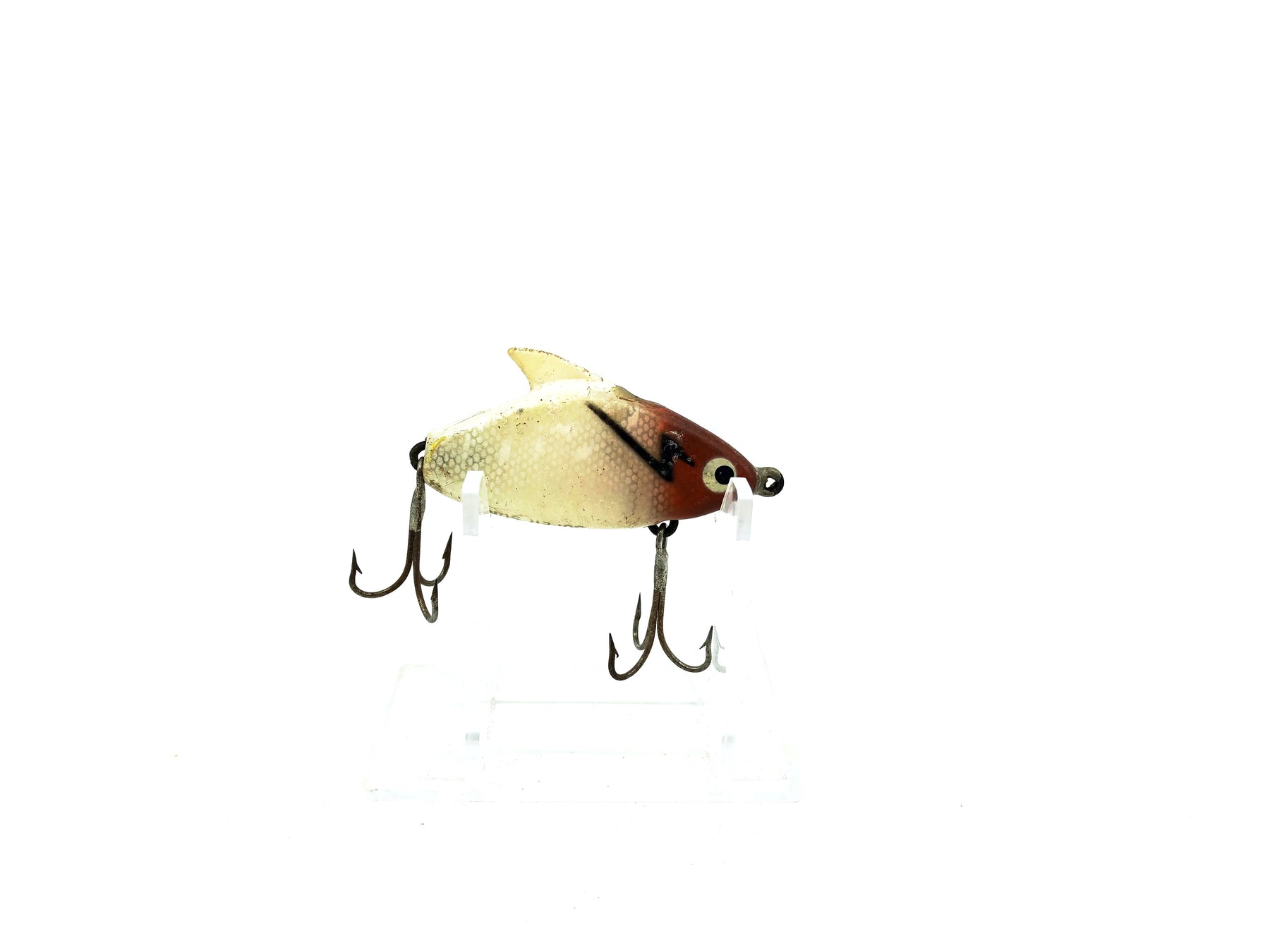 Heddon Super Sonic Color RH Red and White. About 2" long. Used with wear but still in ok condition. Notice that the eyelet has been moved. Great color on this lure. One of the best lures ever made. Fish or collect this Heddon classic.