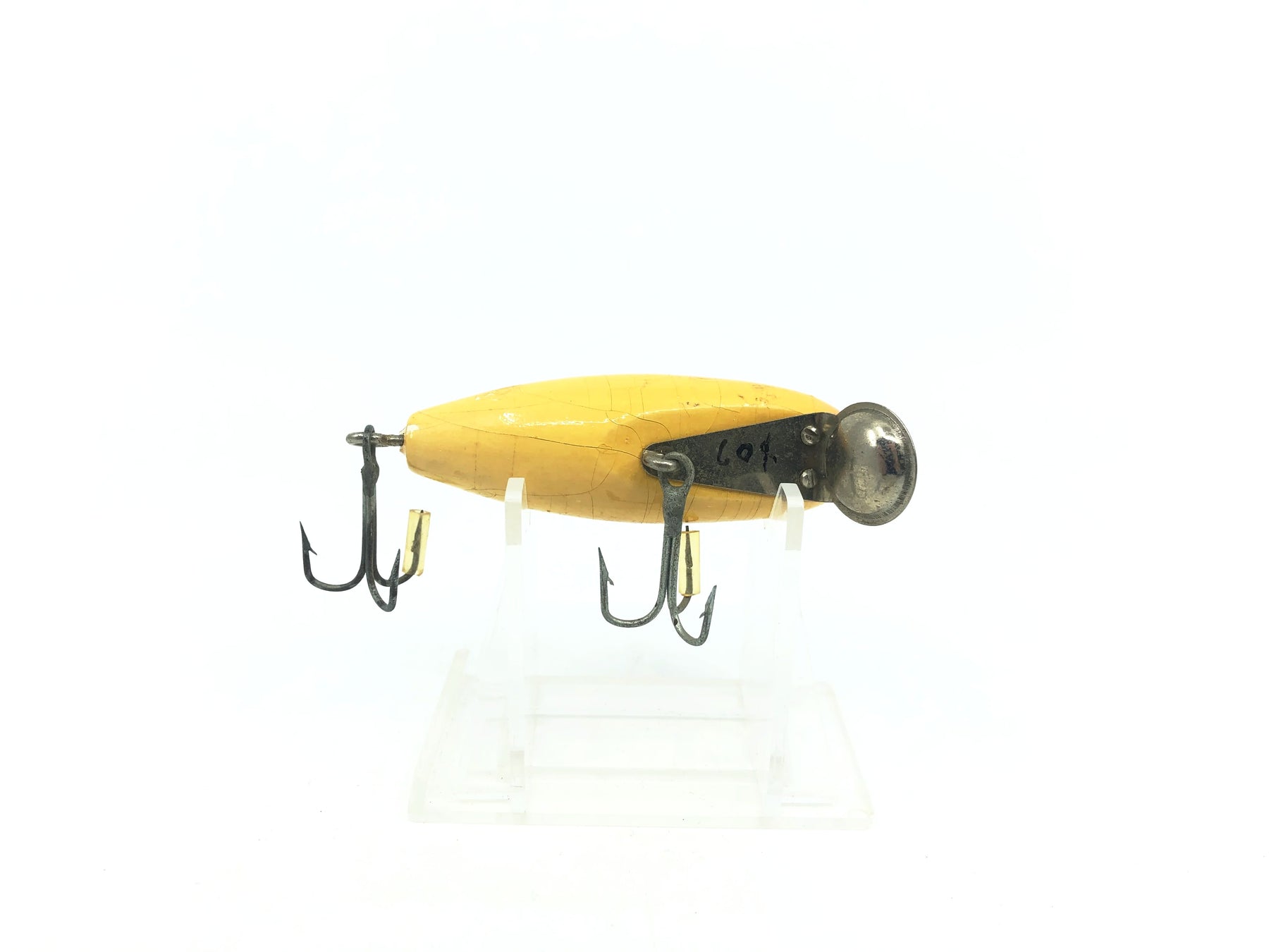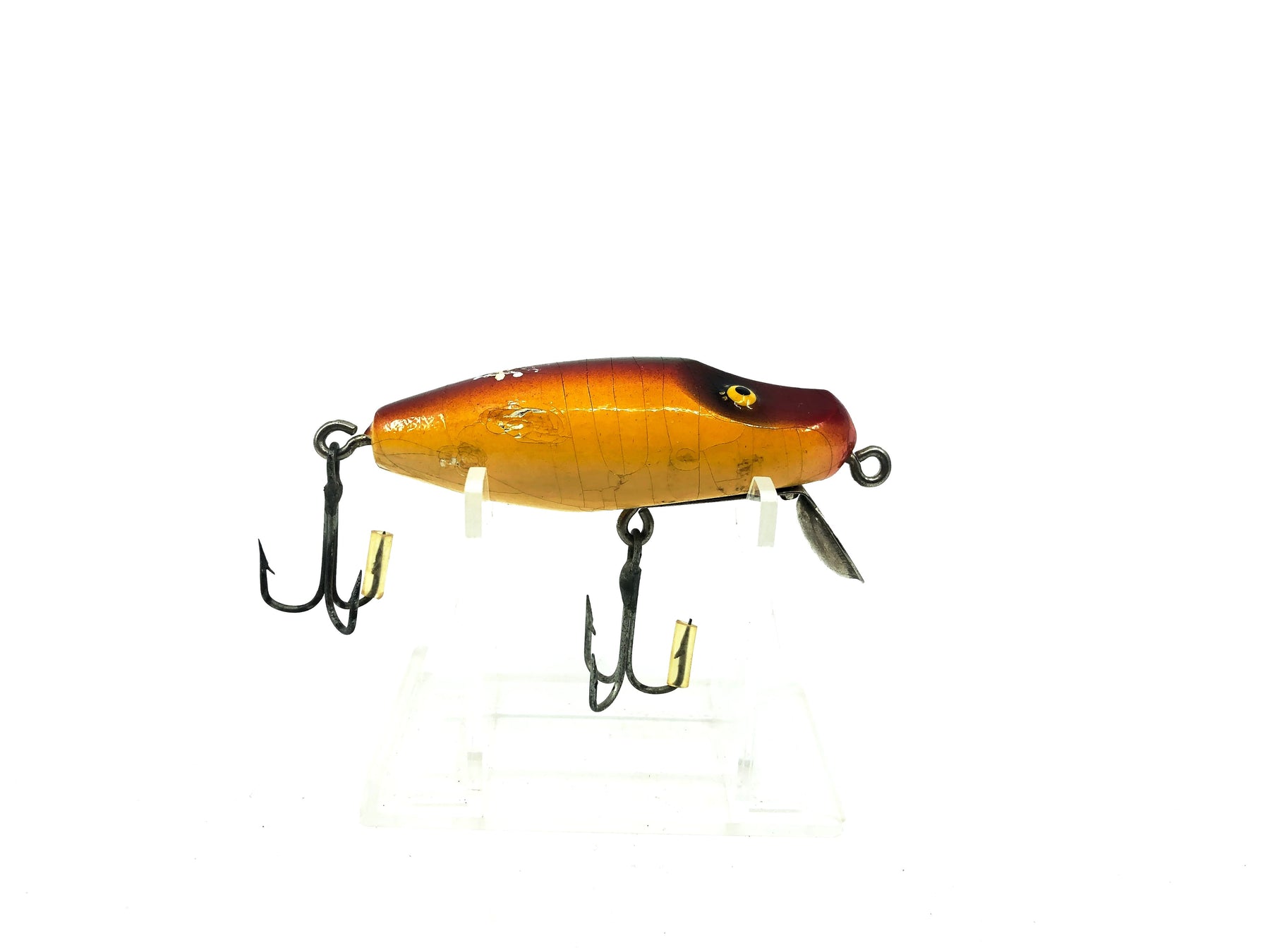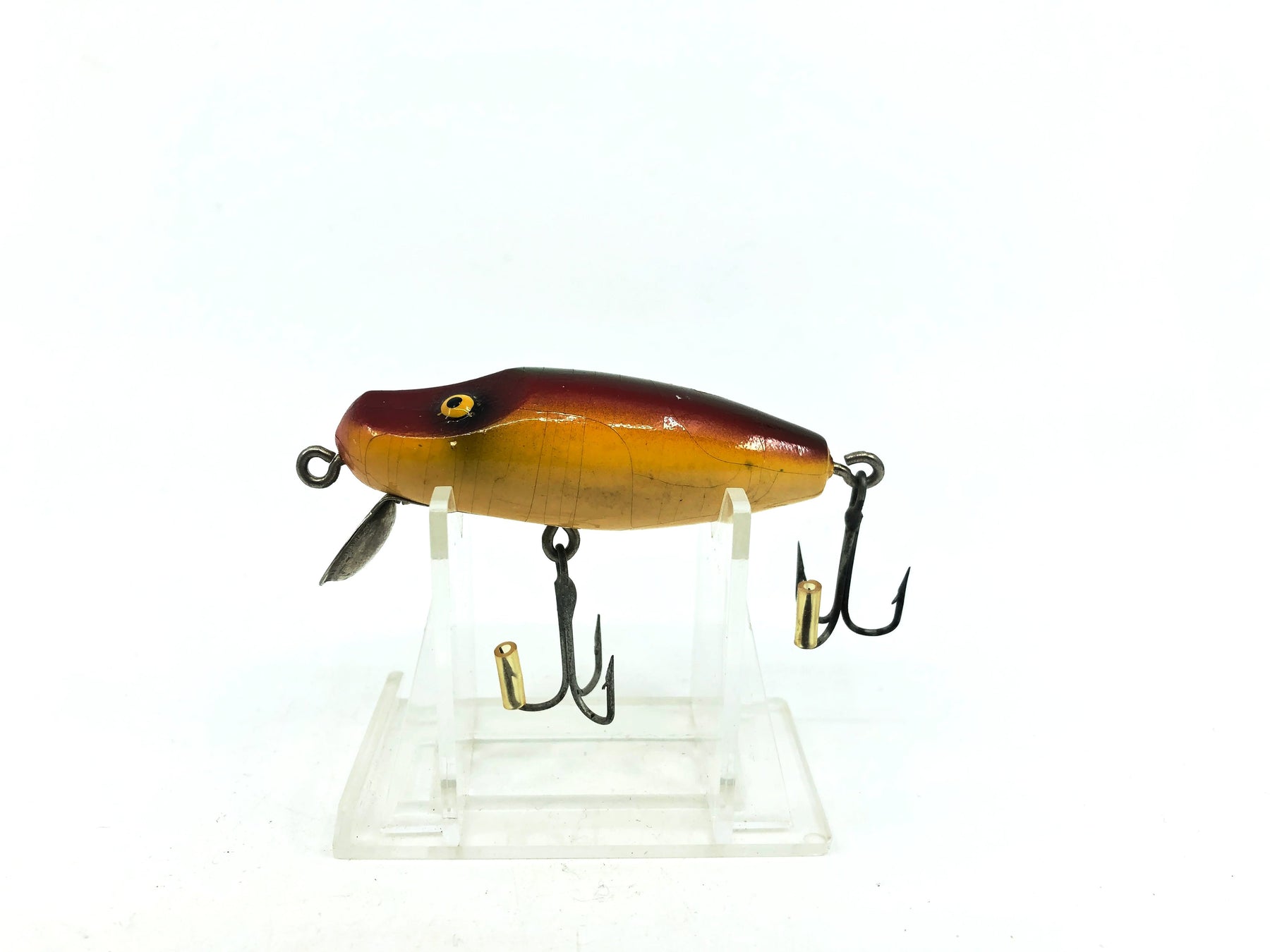 Shur-Strike River Master, Rainbow Color. About 3" long with lip. Wooden lure, tack eyes. Used with some wear and writing on the bottom but still overall good condition. Fish or display. See photos. Classic vintage lure here.
