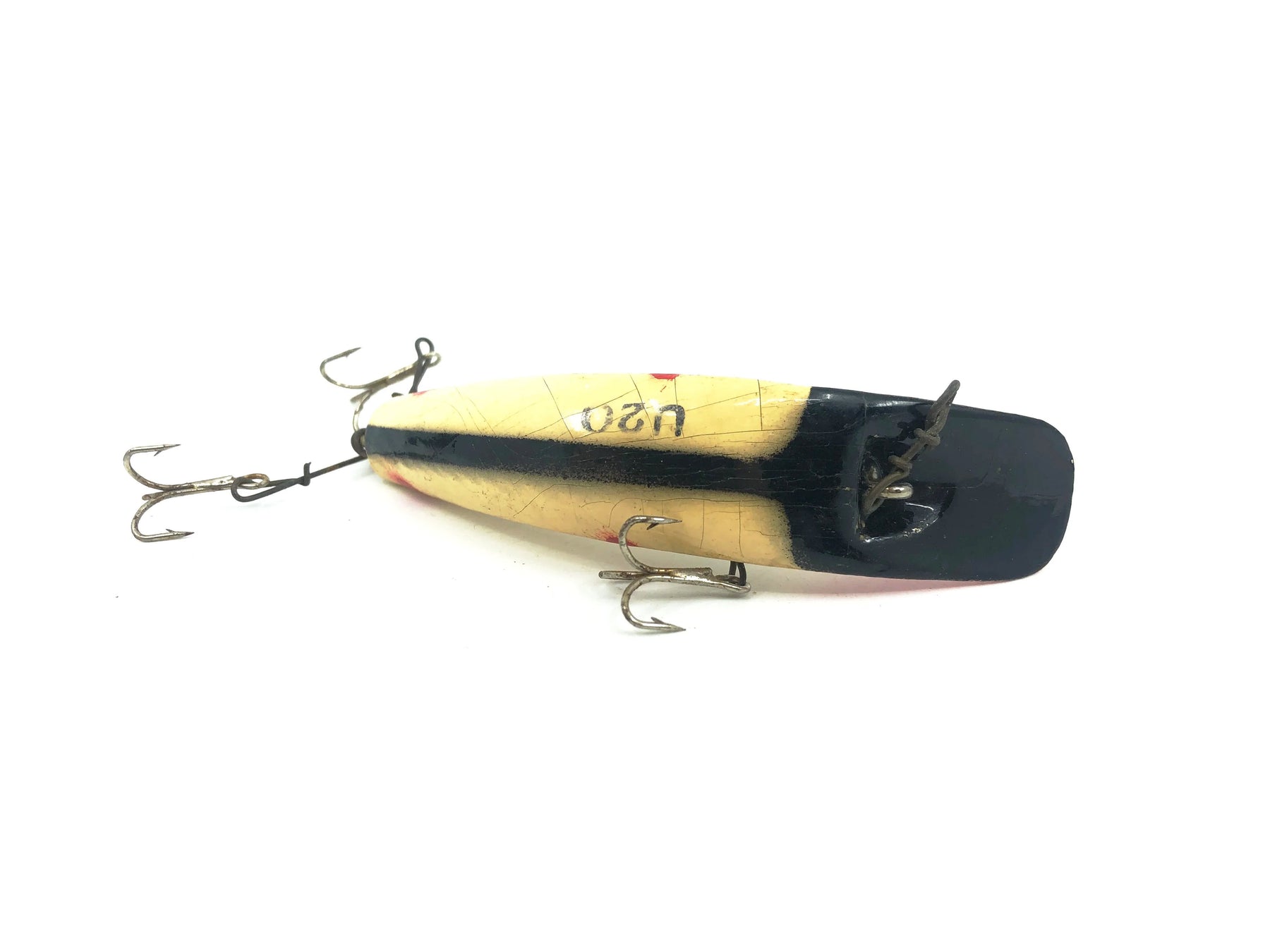 Helin Wooden Flatfish U20 WB White/Red Tip/Black Stripe Color. About 3 1/2" long. Used vintage lure with some minor wear but in overall great condition. Classic lure here. See photos. Fish or collect!